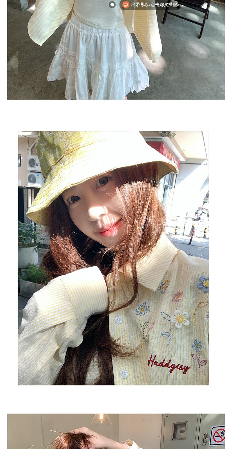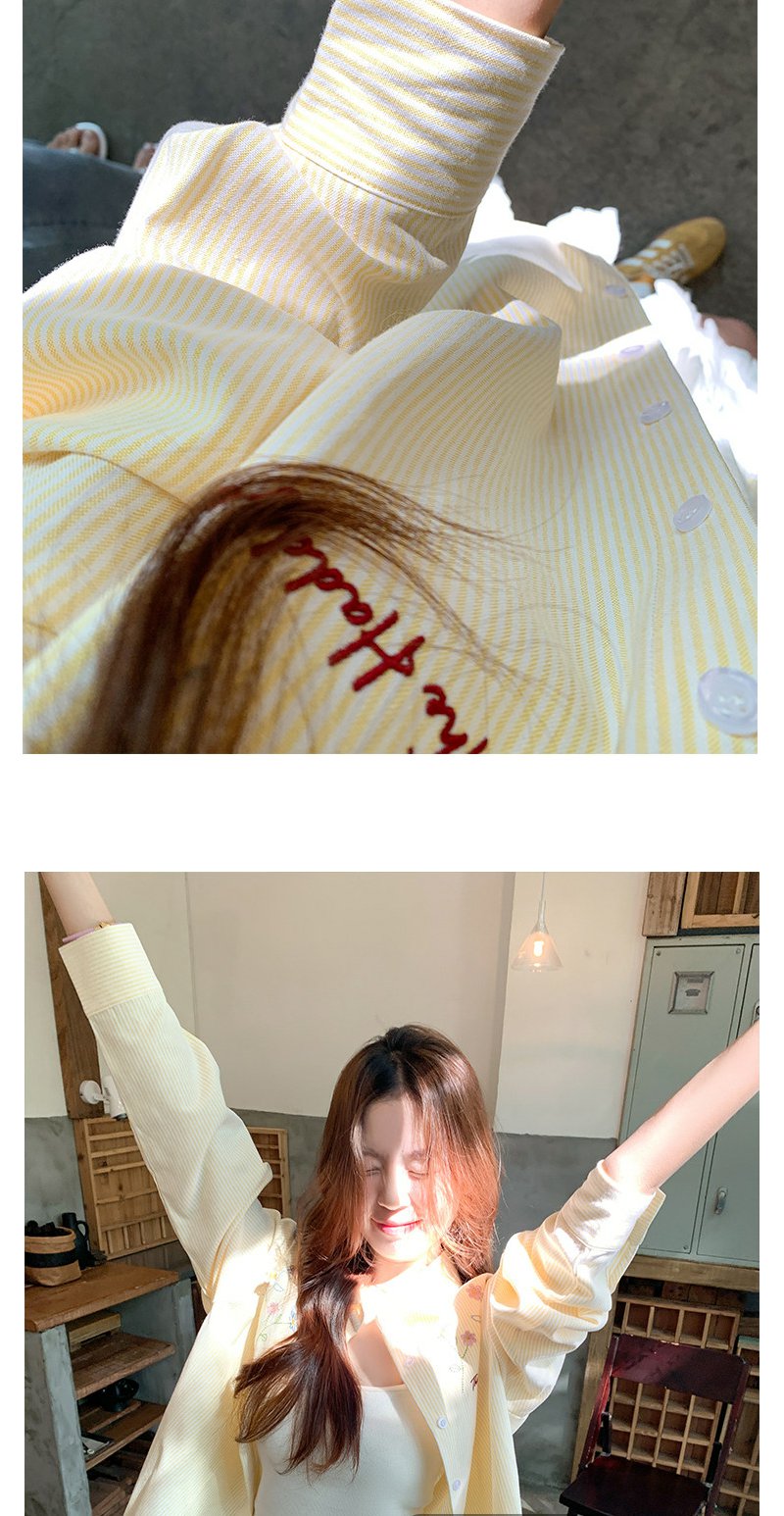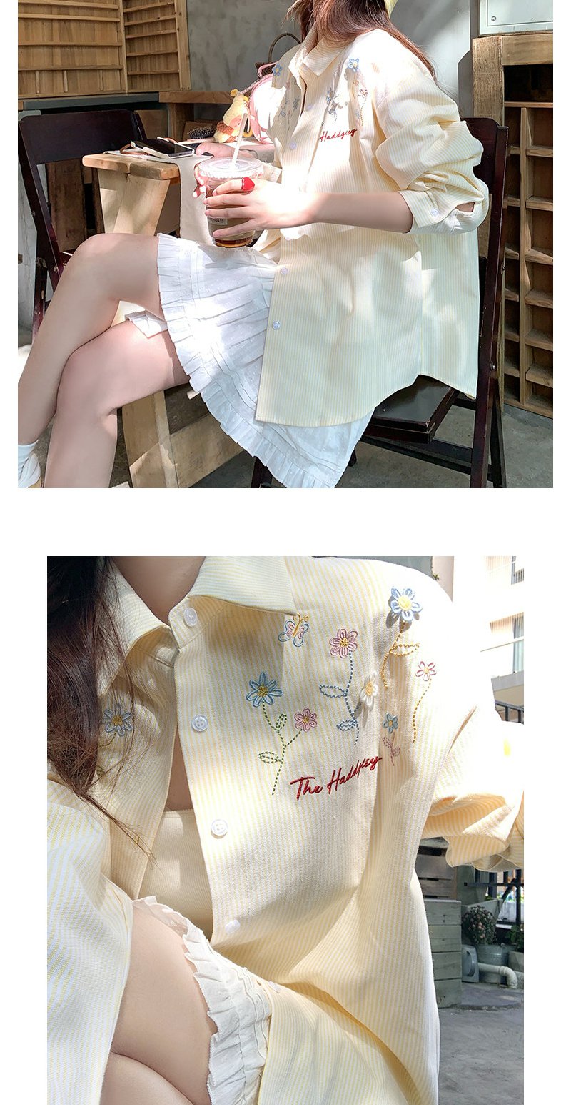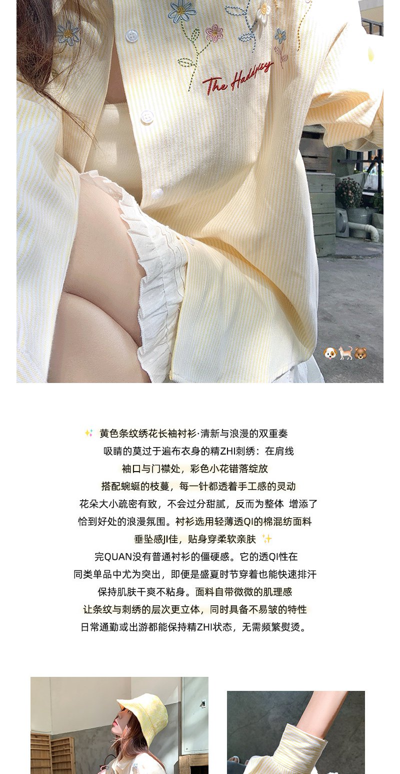 <曾小咸推荐>韩系黄色条纹刺绣长袖衬衫