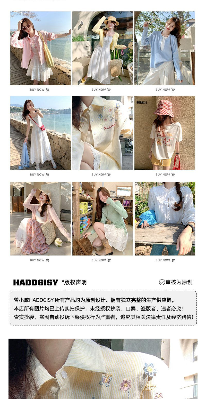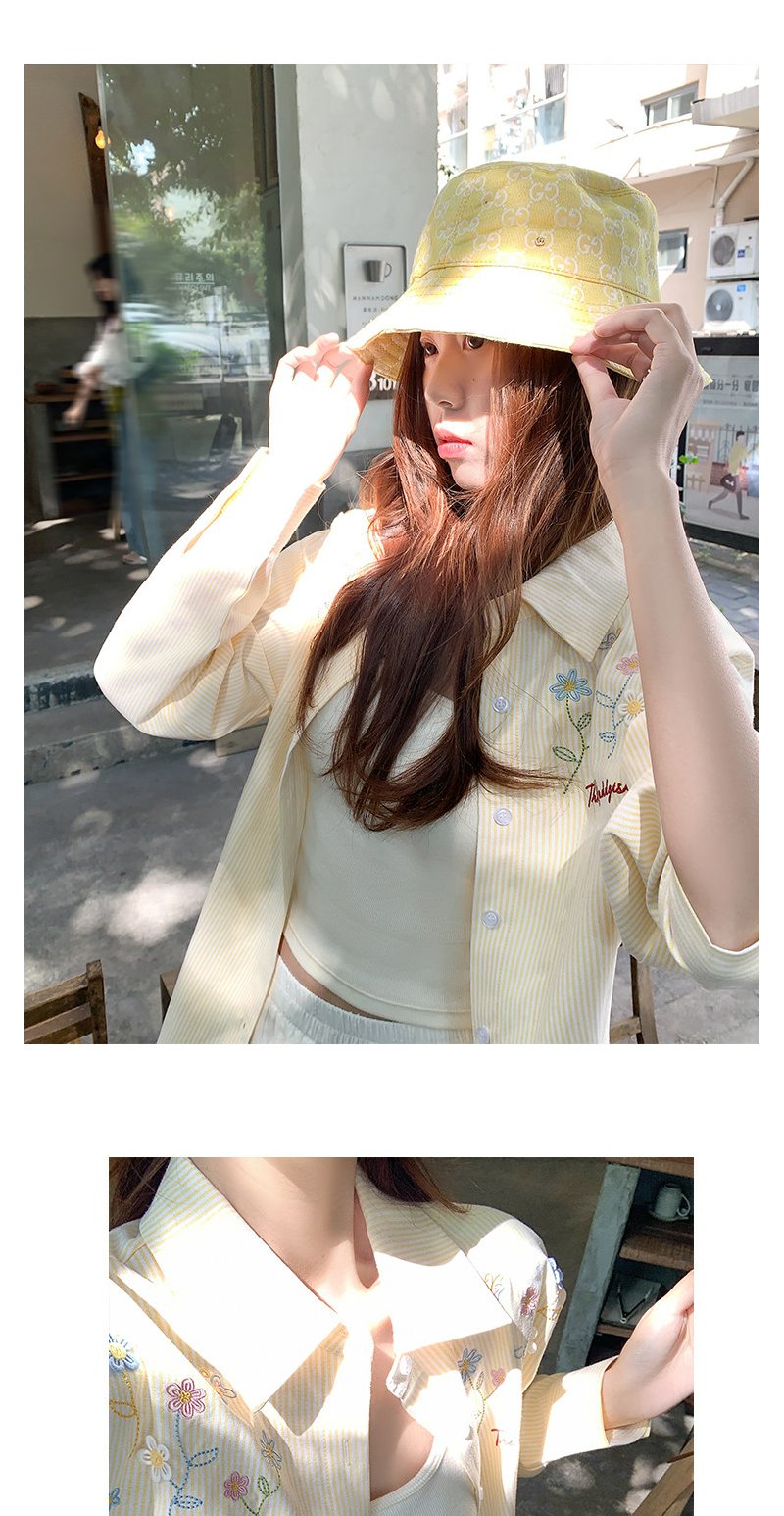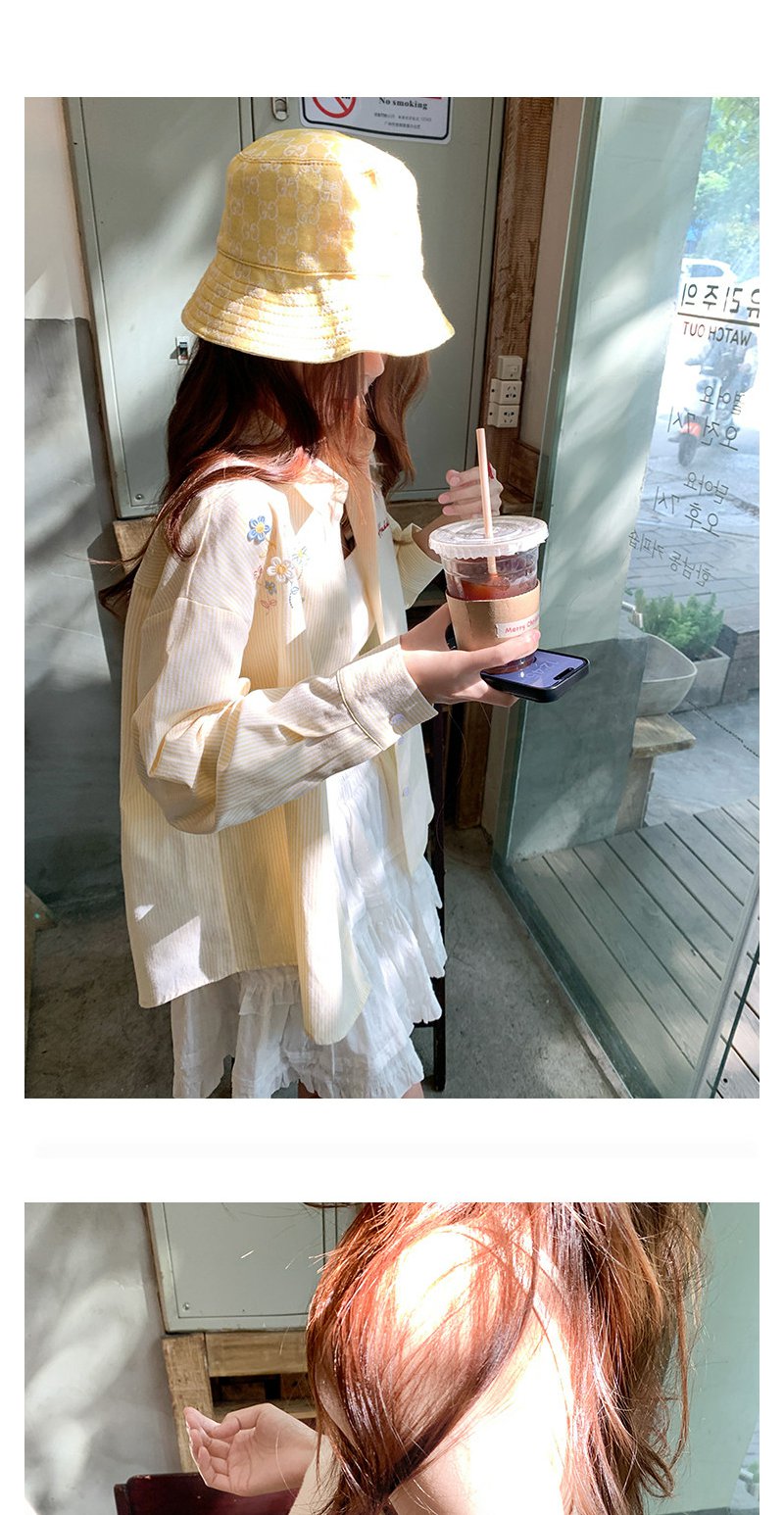 <曾小咸推荐>韩系黄色条纹刺绣长袖衬衫