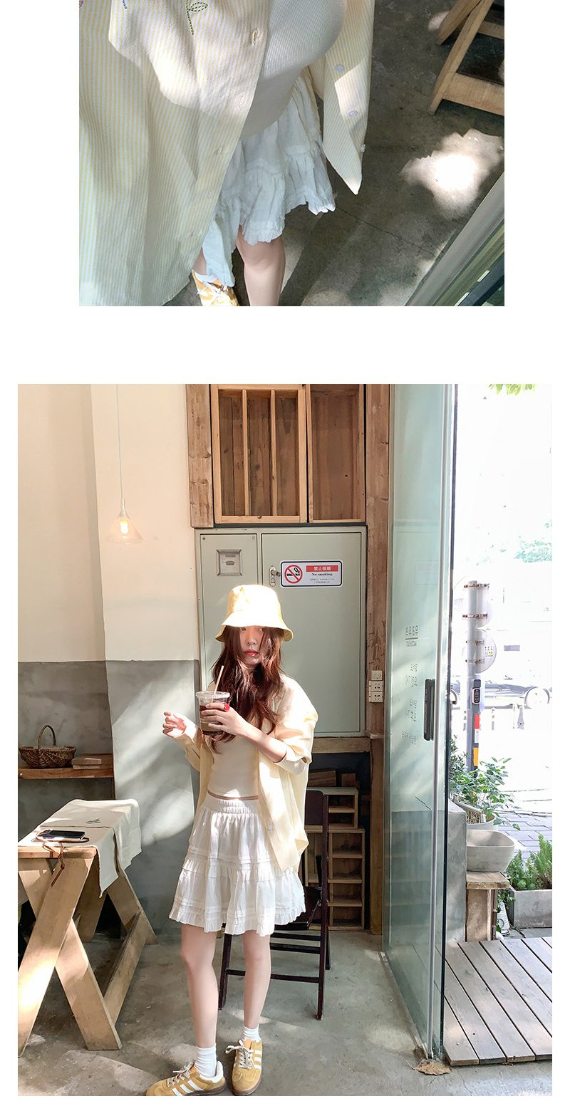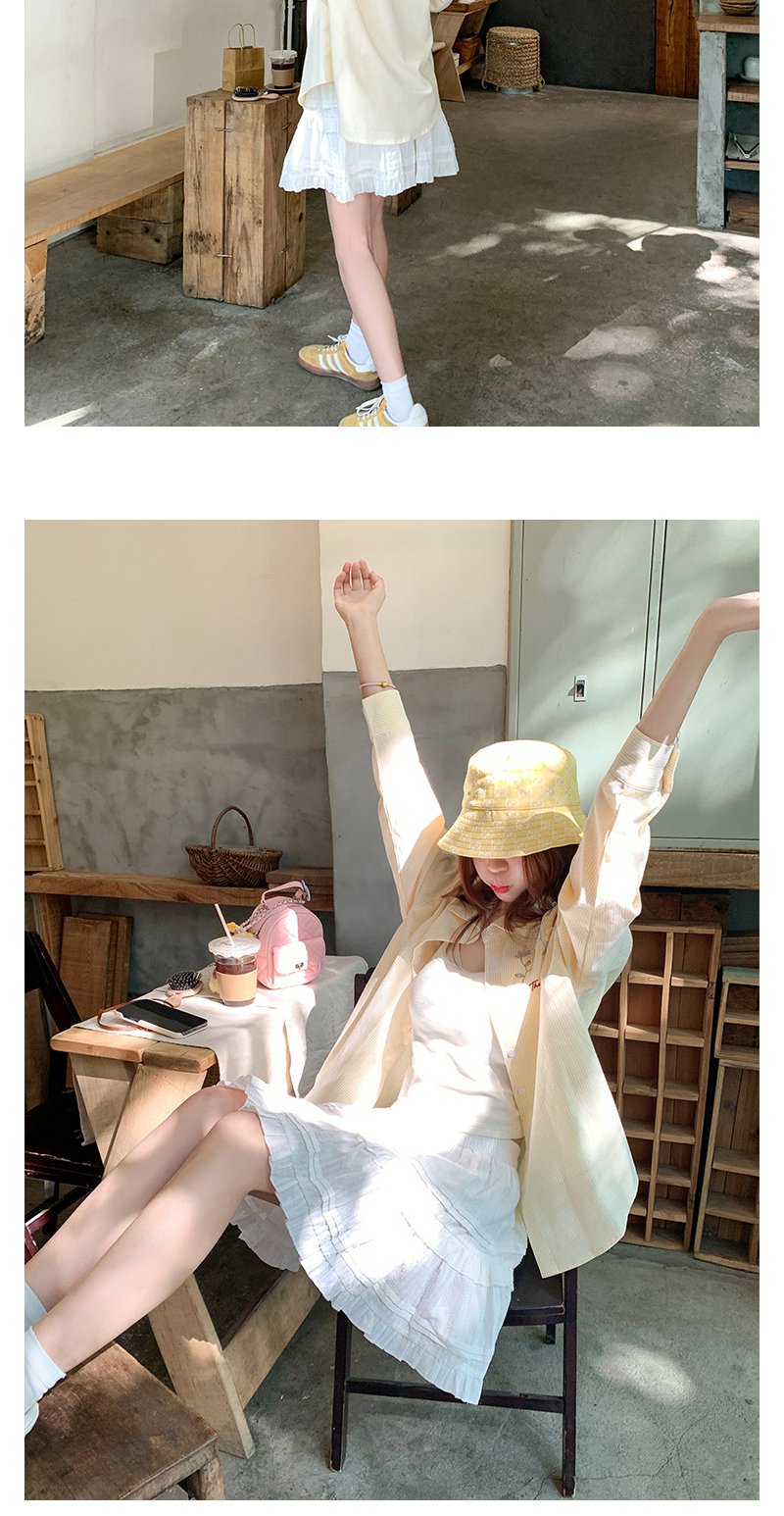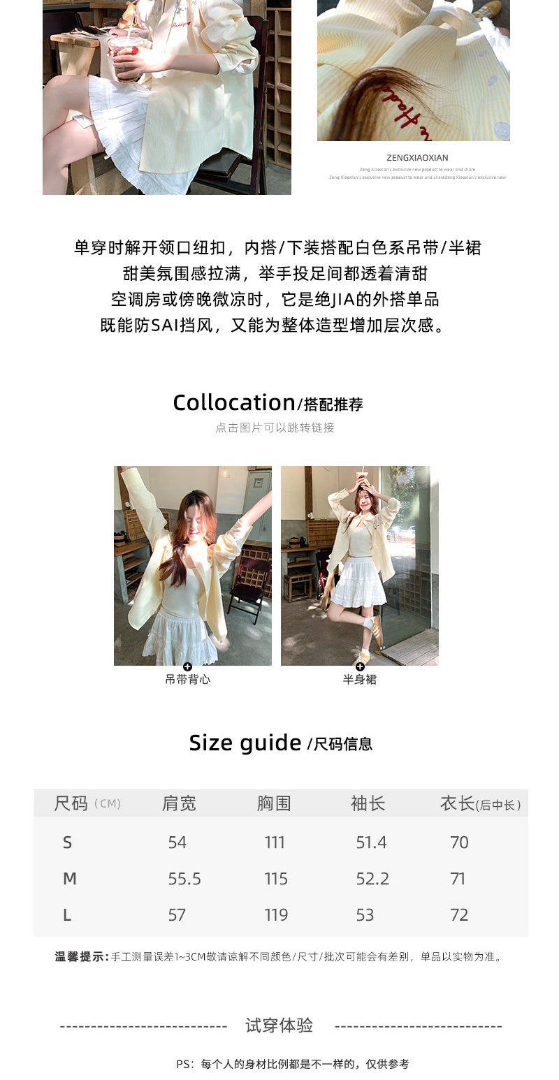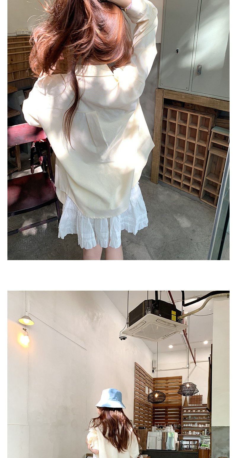 <曾小咸推荐>韩系黄色条纹刺绣长袖衬衫