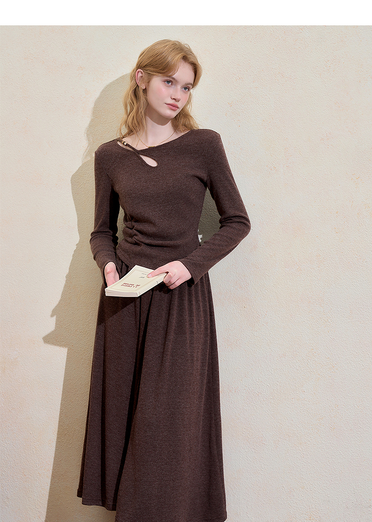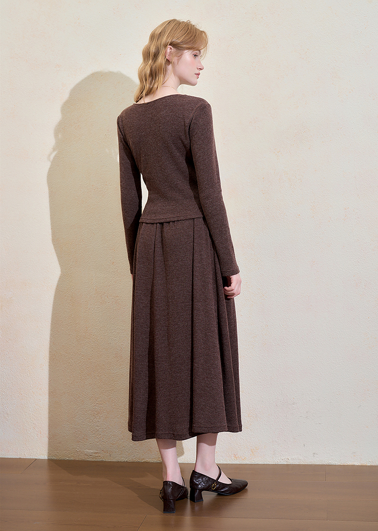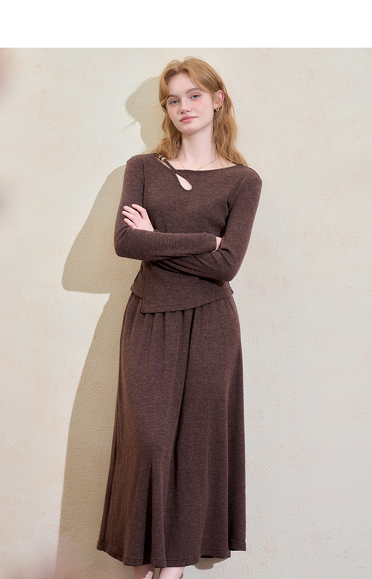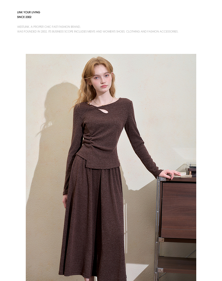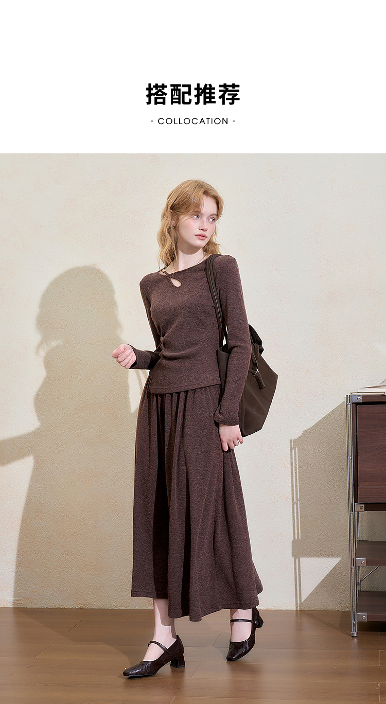 西遇气质针织套装女冬季串珠镂空抽褶针织衫搭半身裙两件套V3755289
