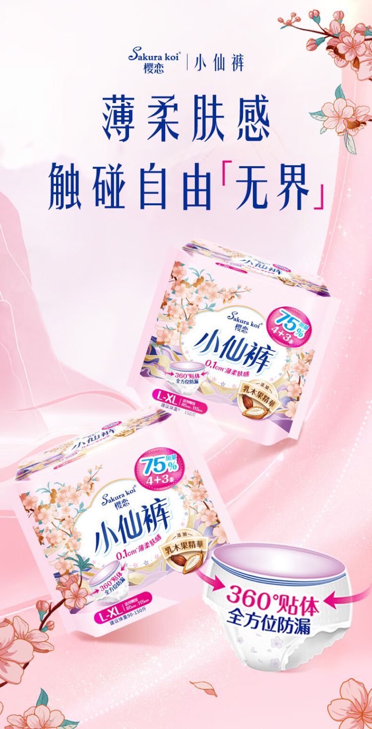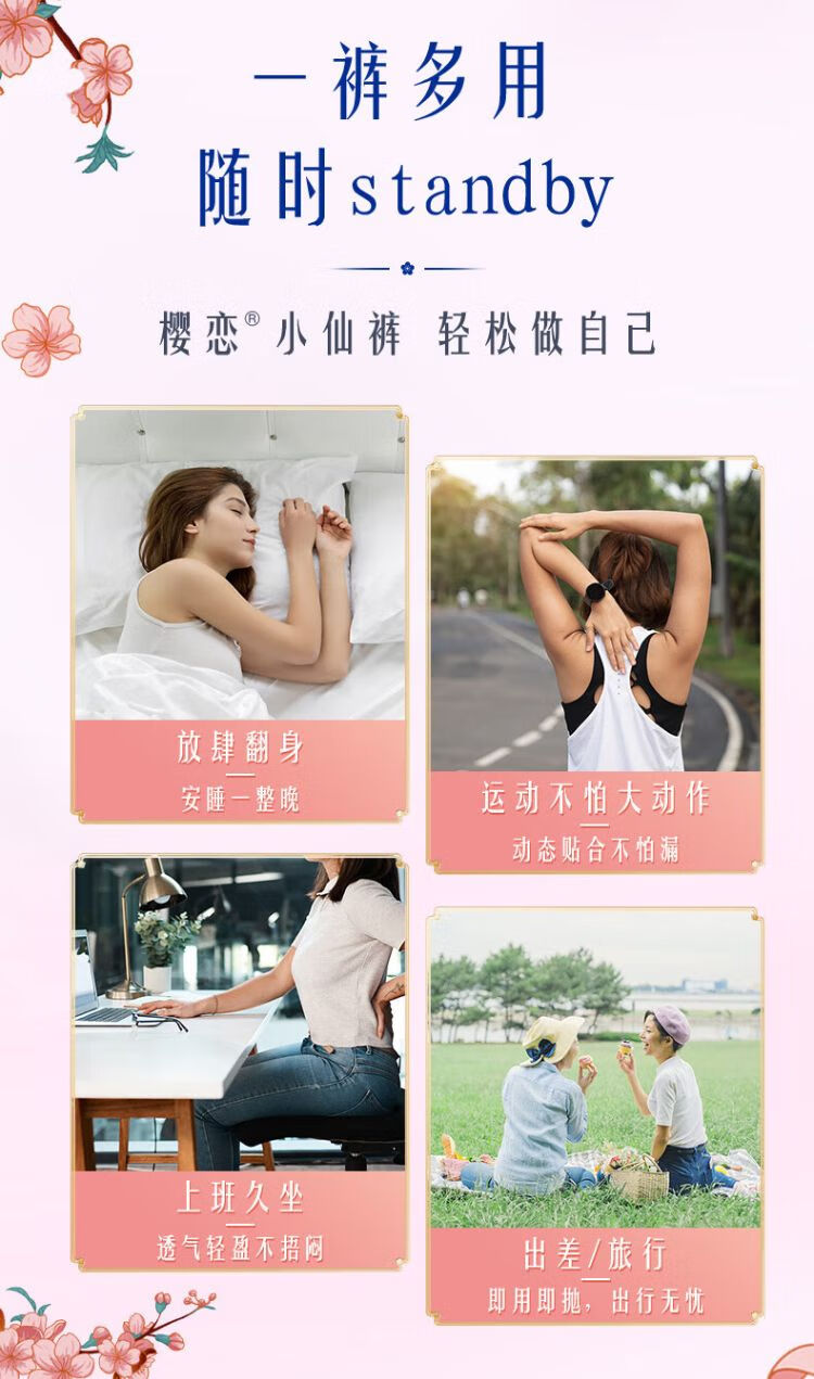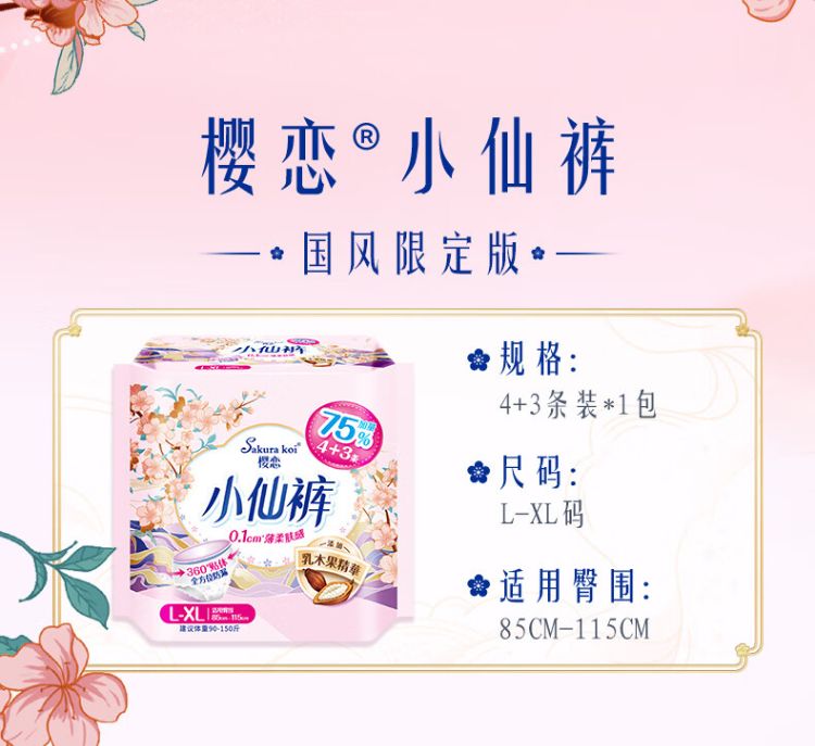 樱恋小仙裤女性卫生裤(国风限定版)加量装 (L-XL码/4+3P)/包