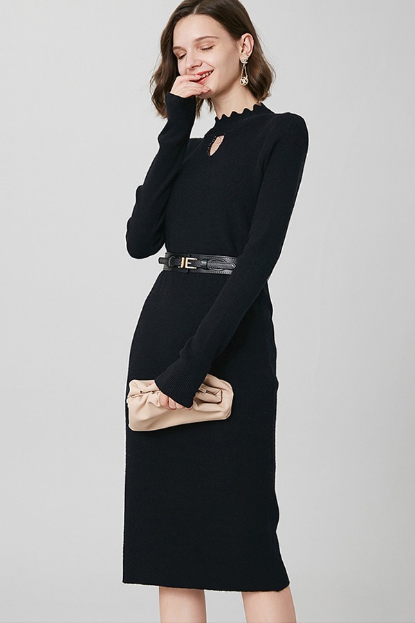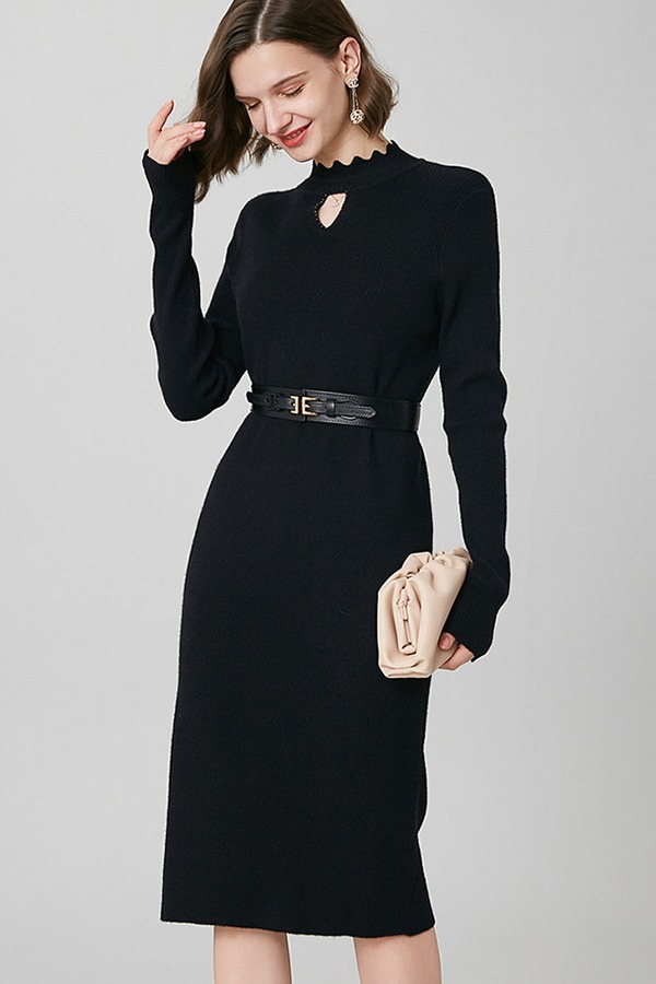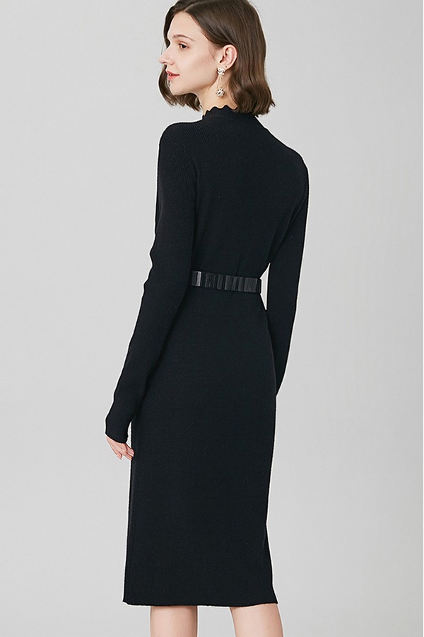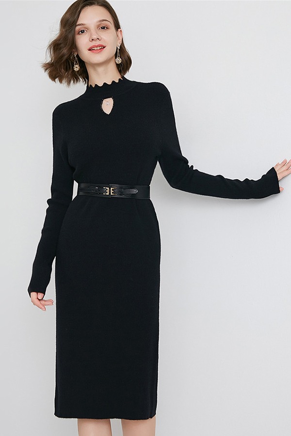 ONEBUYE/晚白 纯色打底毛衣连衣裙 10418