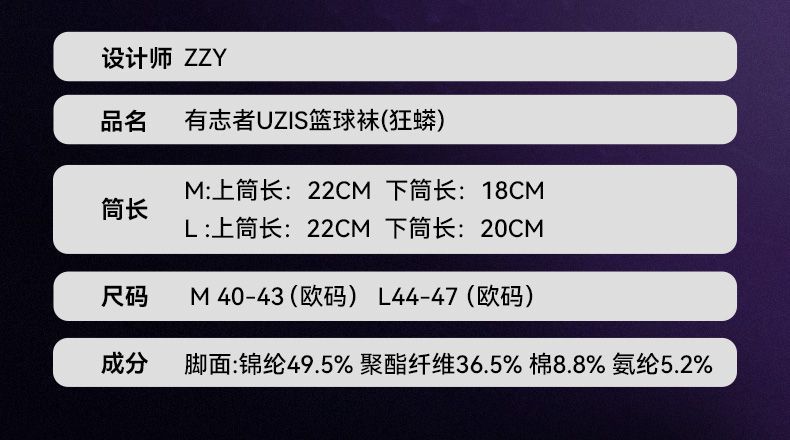 有志者UZIS篮球袜专业实战训练球员级长筒袜子男款防滑纱高帮狂蟒