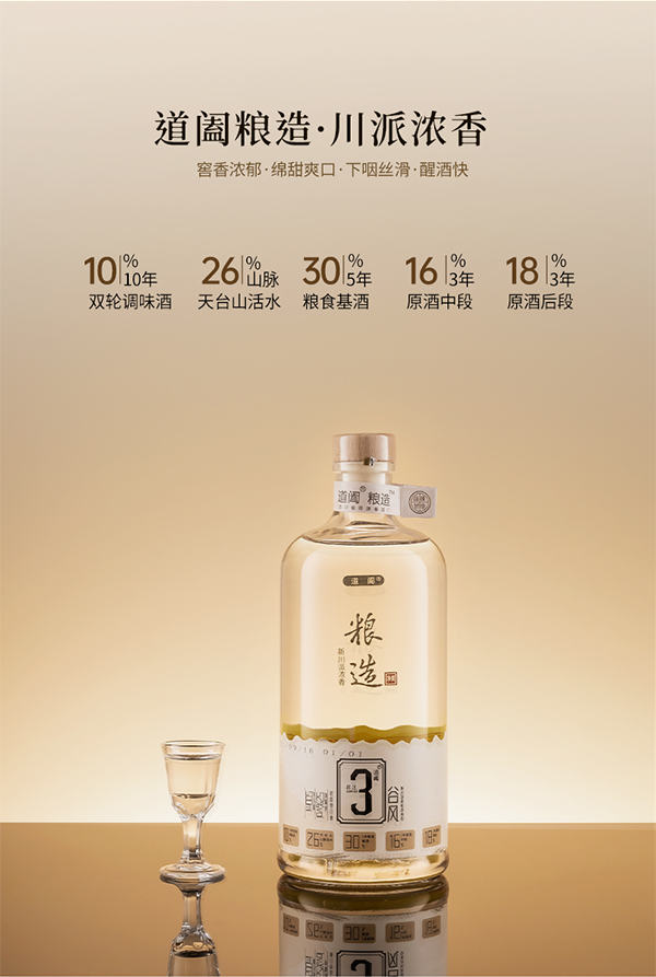 【10年老酒】道阖粮造3号品鉴酒 新川派浓香型 52%vol
