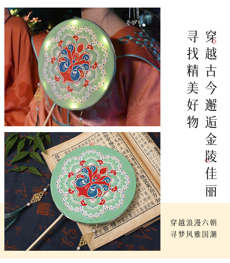 牛首山文创古风发光团扇汉服拍摄文创舞蹈生日礼物南京纪念品