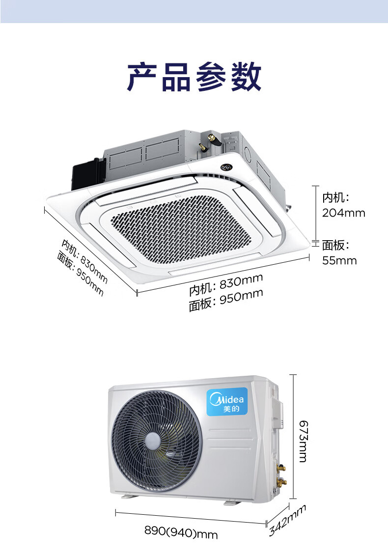 【国补15%】美的中央空调 3匹天花机 嵌入式吸顶机 天井机 变频冷暖 商用空调 RFD-72QW/BDN8Y-D(B1)A商铺餐厅空调