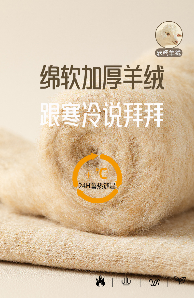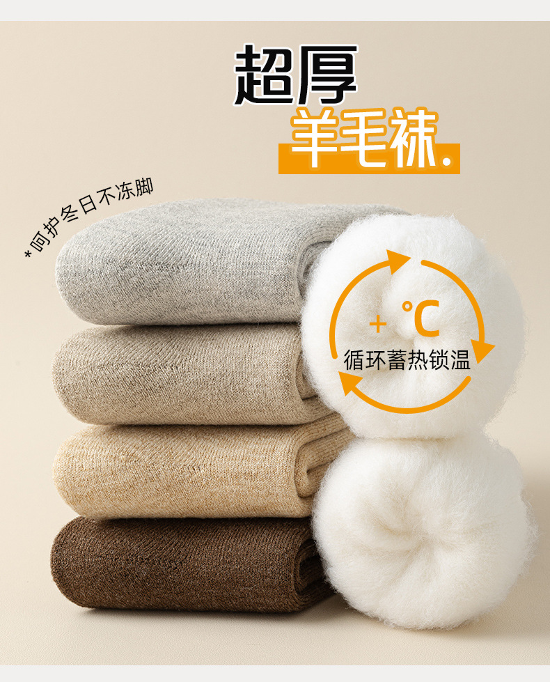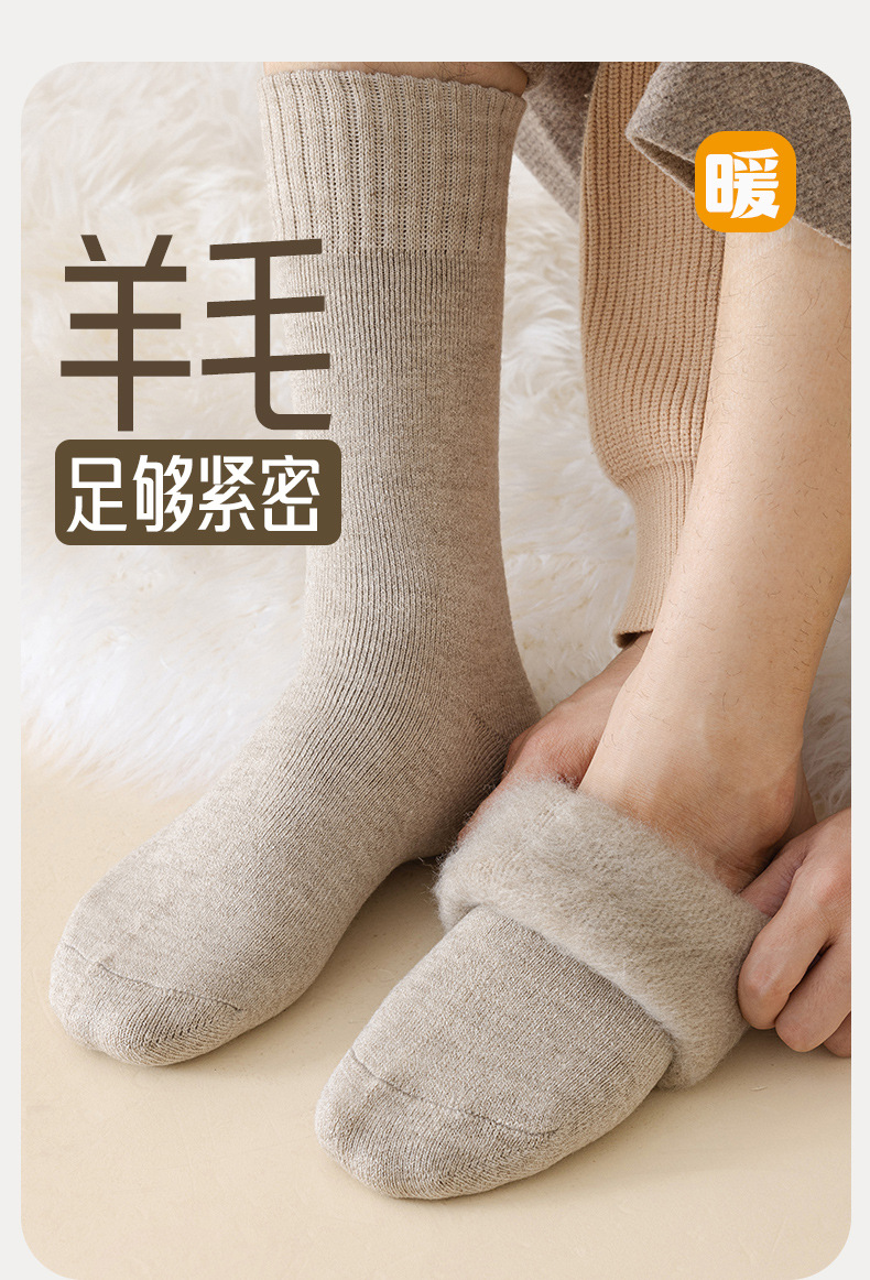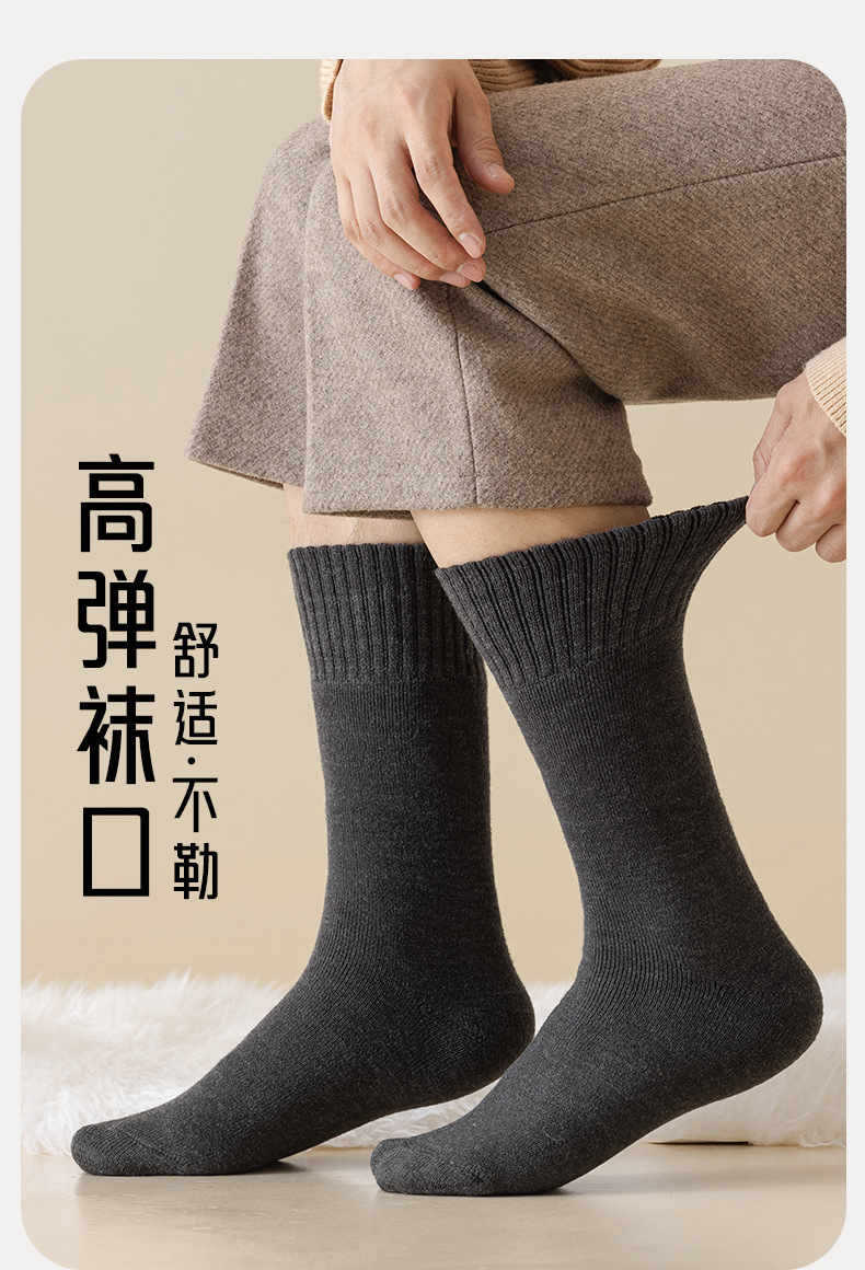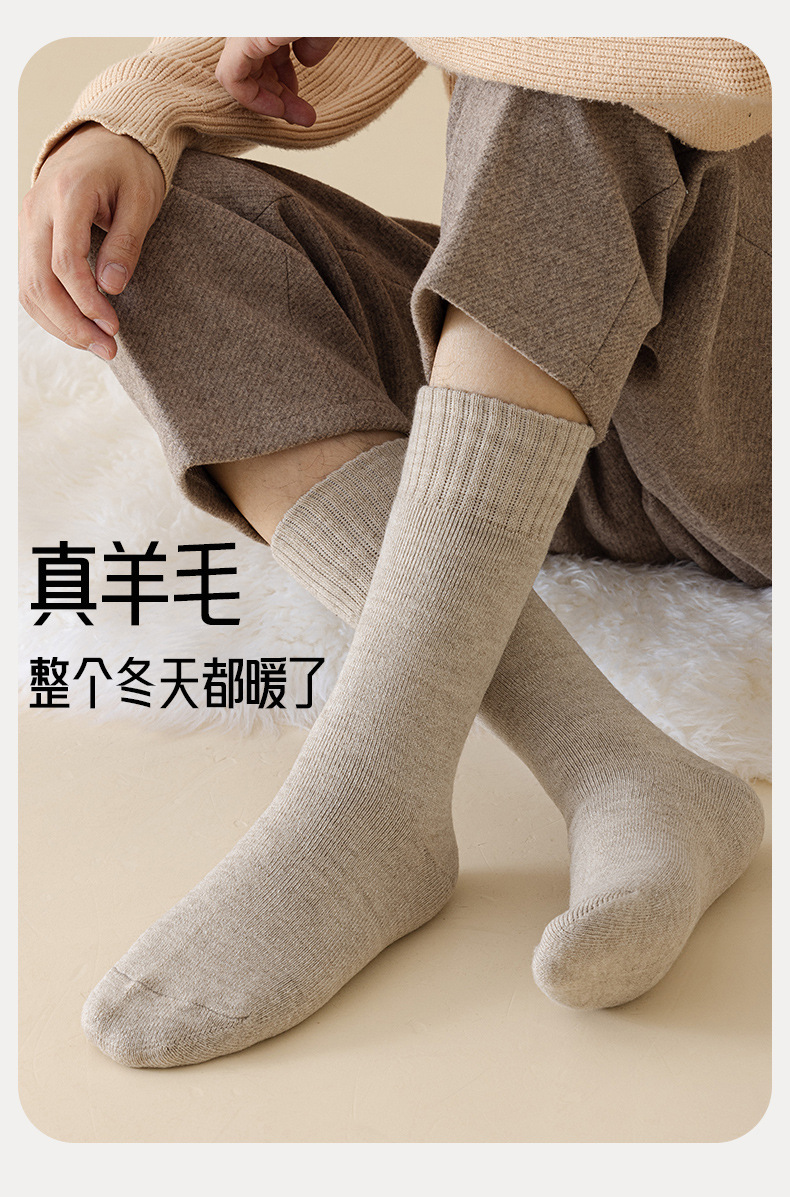 1221羊毛袜子男冬款超厚加长筒保暖地板袜发热防寒中筒男士羊绒袜