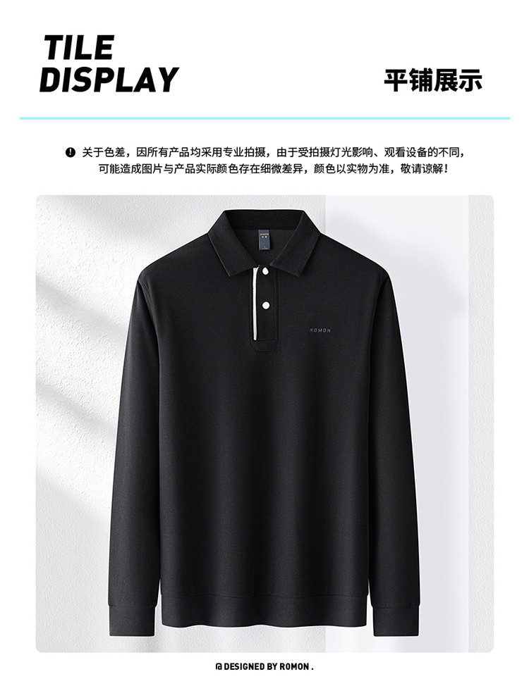 【7A抗菌 棉混纺】罗蒙春秋男装长袖POLO衫男士休闲百搭舒适星空格polo衫男长袖t恤
