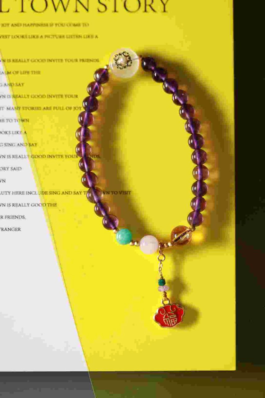 | 配件 | 铜珠(古法金),黄水晶, 粉水晶,天河石,银镀弹簧 扣,沙金O字链,孔雀石方 粒,紫晶隔片,沙金红底福 吊坠,珍珠沙金玛瑙平安扣 |