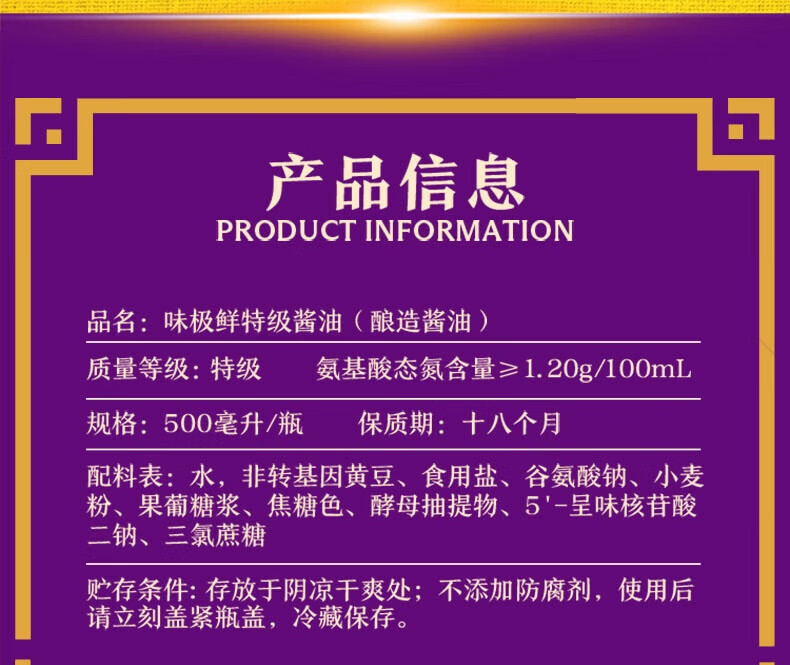李锦记 味极鲜特级酱油(酿造酱油) 500ml
