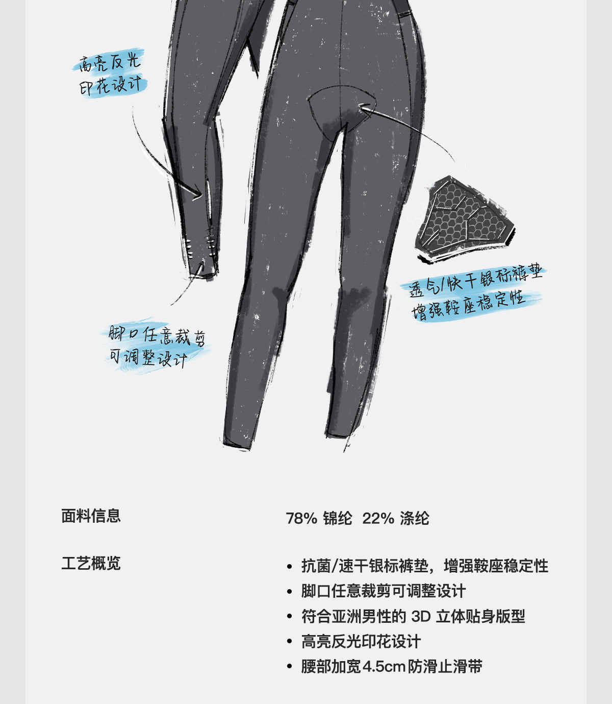 GRC桀骜无尽春夏新款tech系列无背带长裤防晒公路自行车骑行裤男
