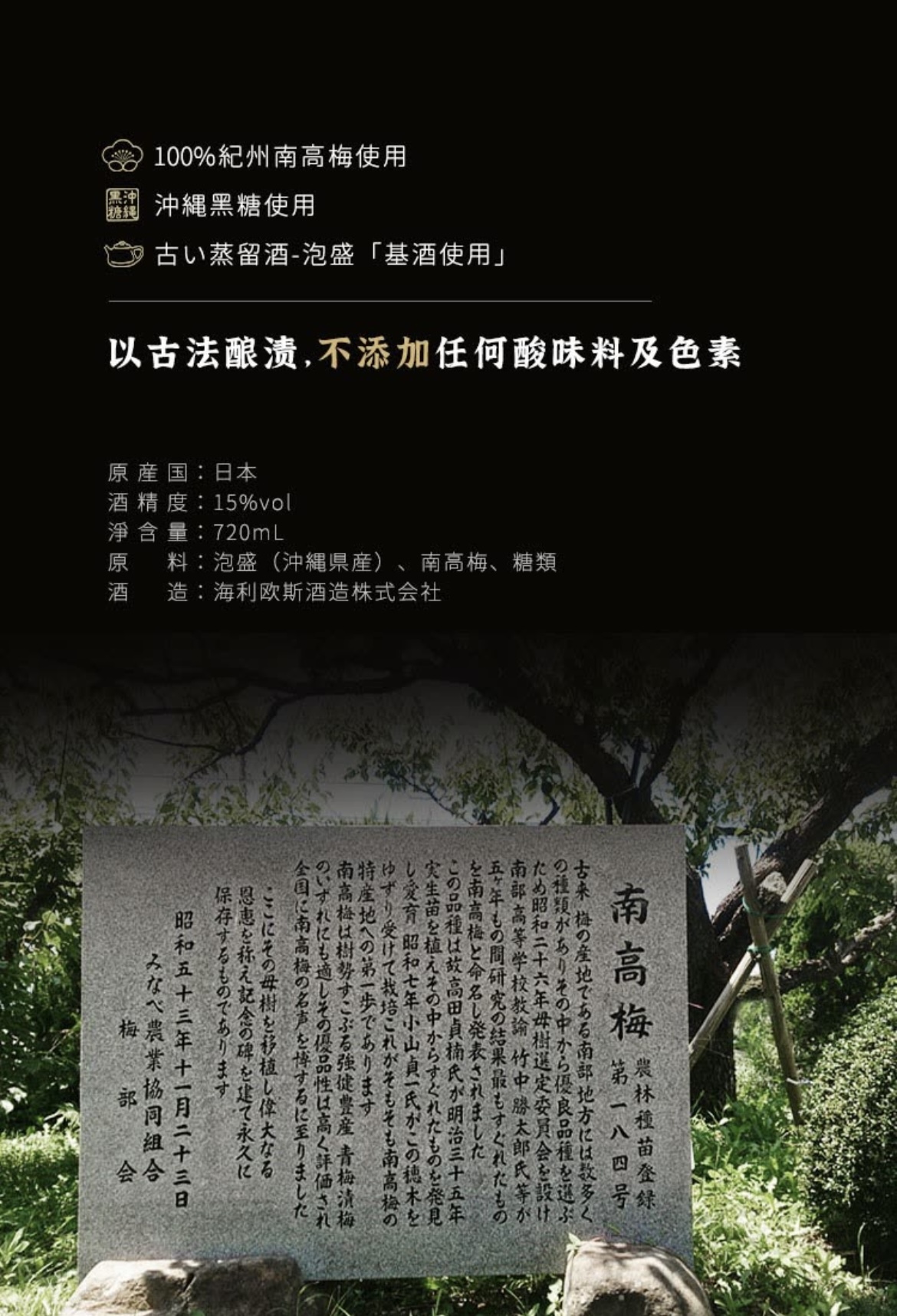 【连续20年金奖】海利欧斯酒造黑糖梅酒 日本原瓶进口 15%vol