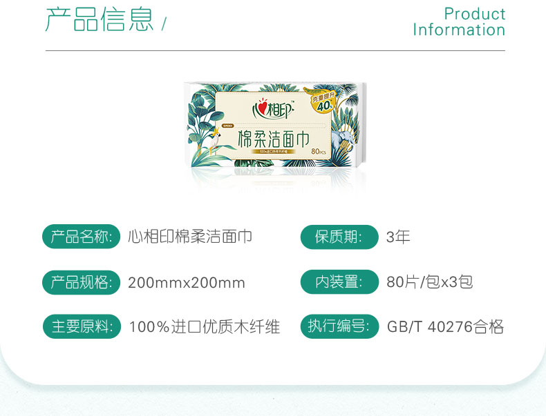 6XCD080(包装)心相印棉柔系列80片装洗脸巾6包装