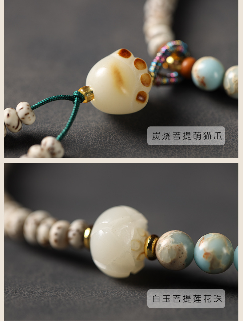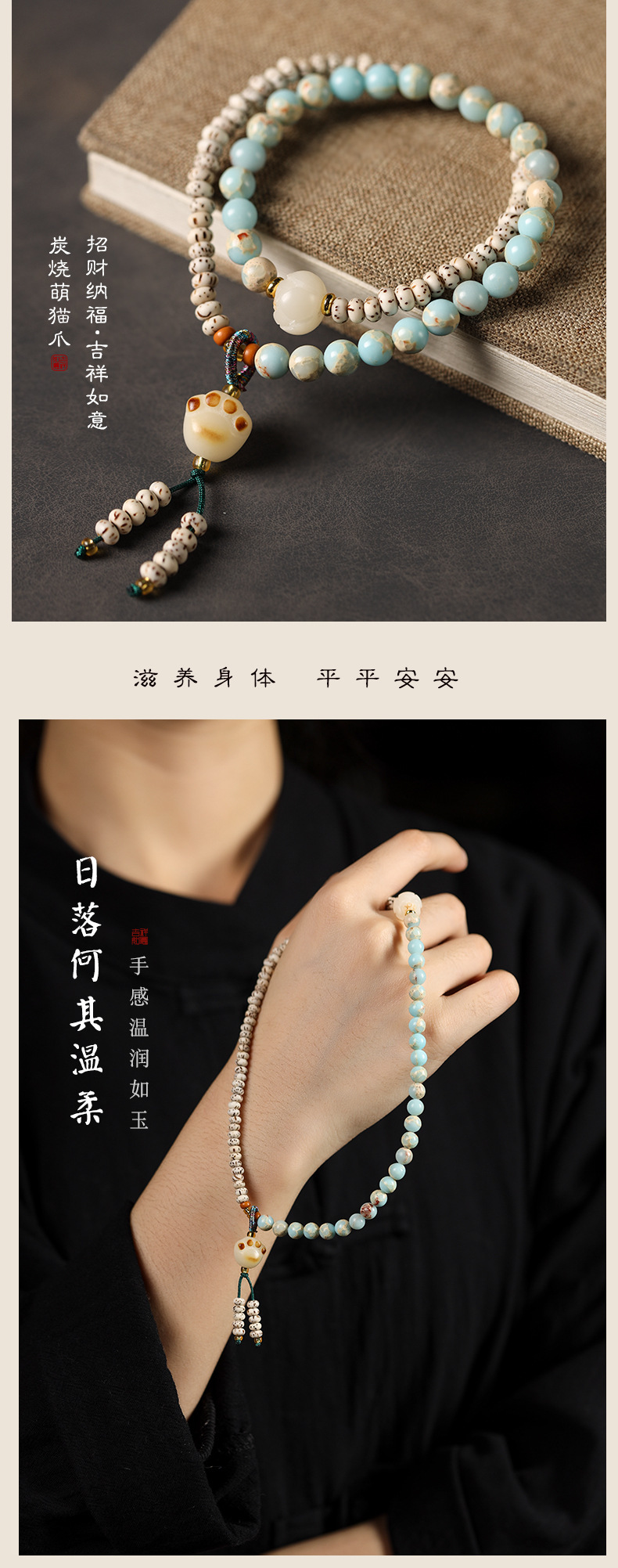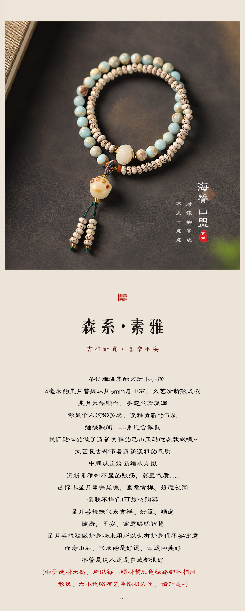 「森系·素雅」猫爪星月菩提盘缠寿山石手链
