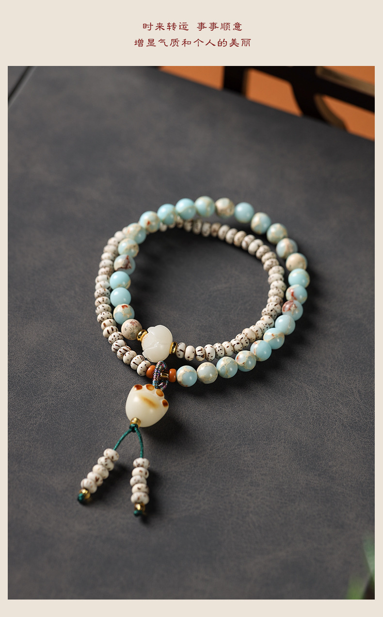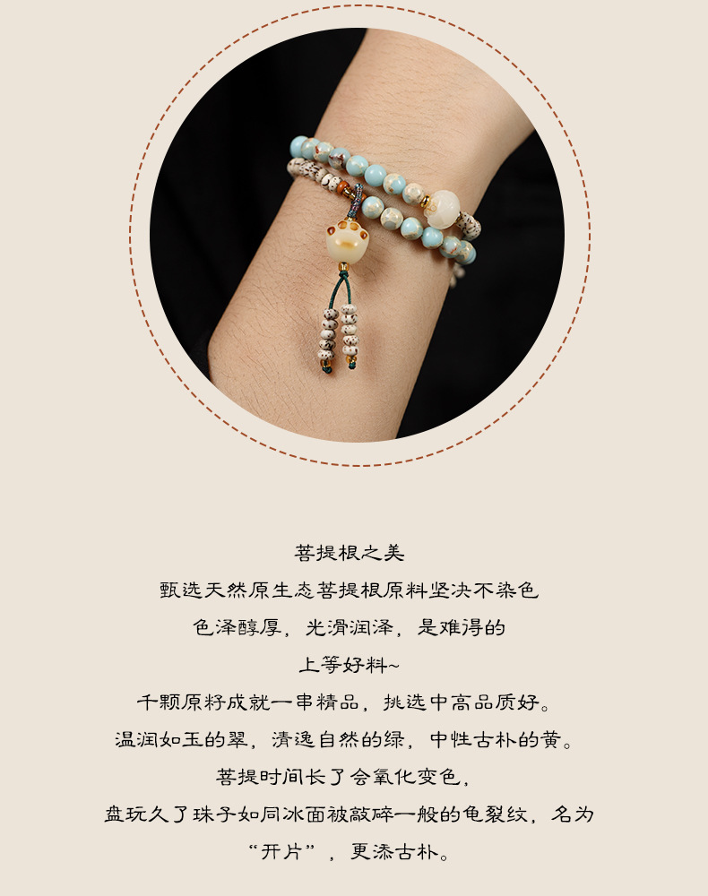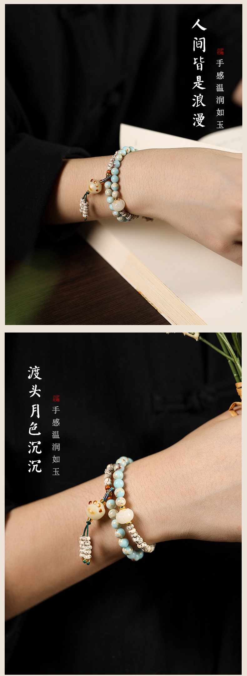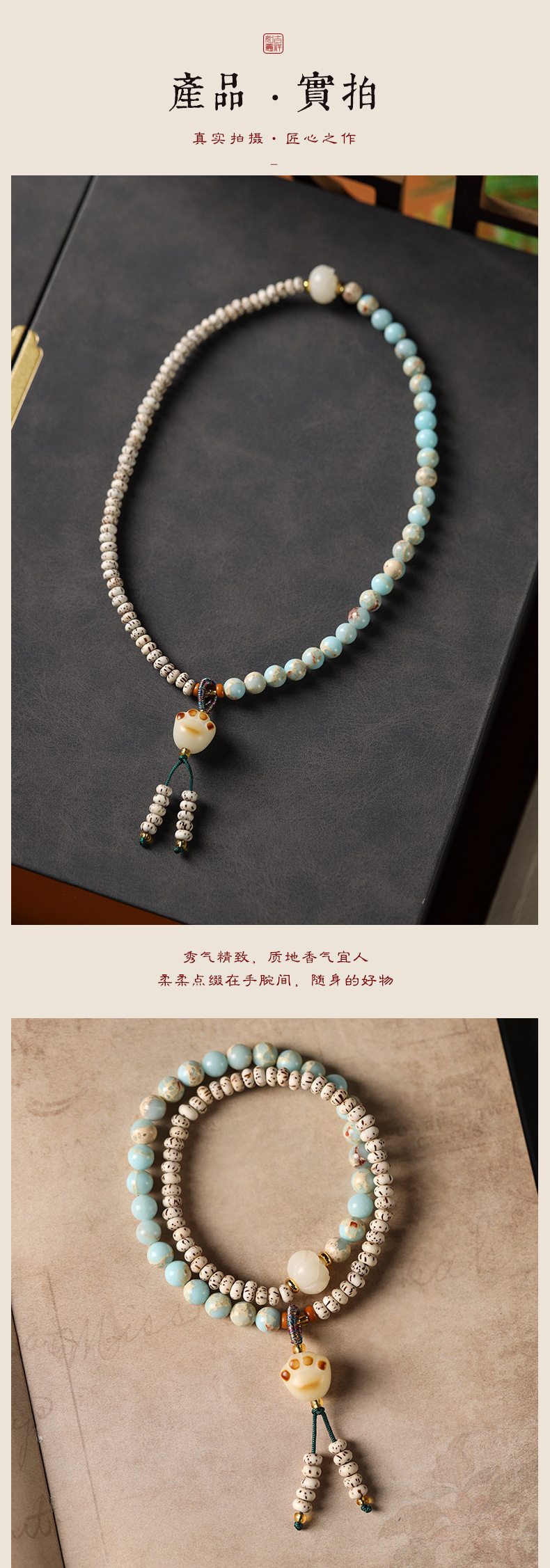 「森系·素雅」猫爪星月菩提盘缠寿山石手链