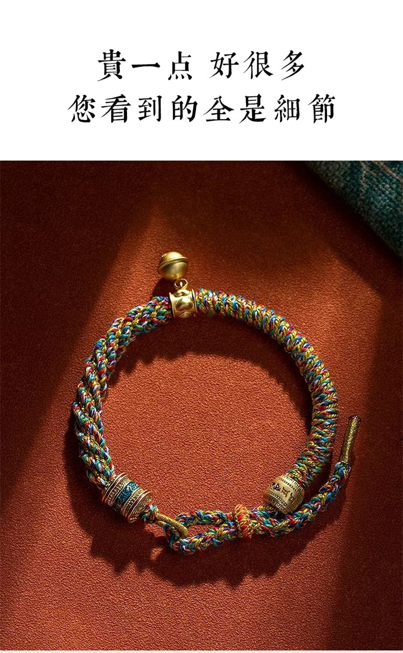 六鑫珠宝 藏式六字真言五彩绳手工编织红绳手链