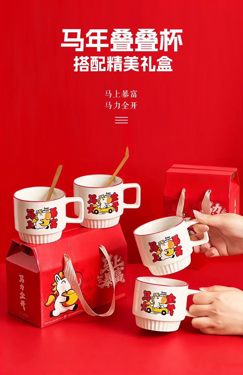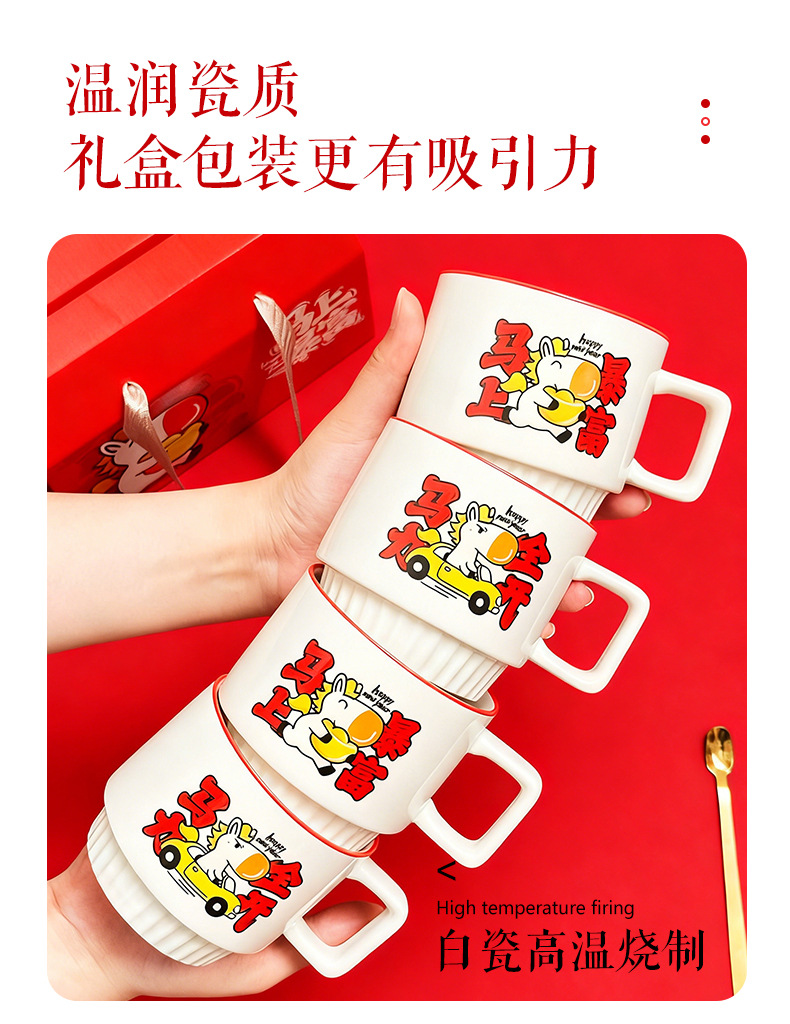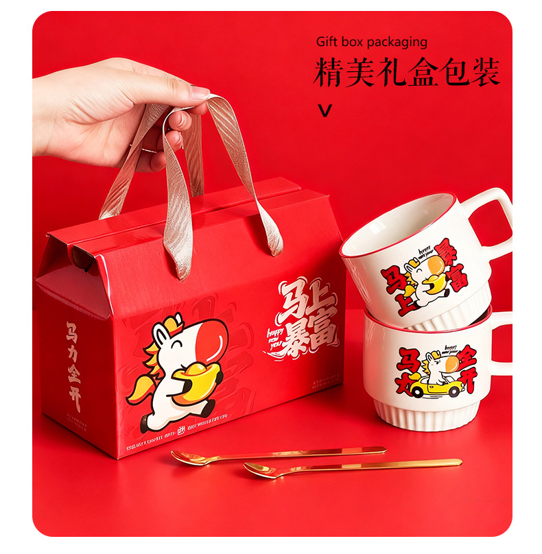 马年创意实用陶瓷杯水杯礼盒装公司开业活动礼品赠送伴手礼定制