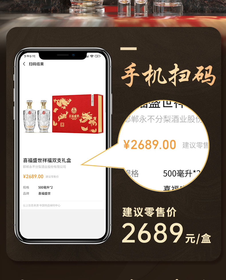 【五粮液股份出品·喜福盛世龙腾限定礼盒】热卖中!!赠一壶两杯+手提礼袋!52°浓香型白酒 500ml*2瓶/盒 一瓶一码
