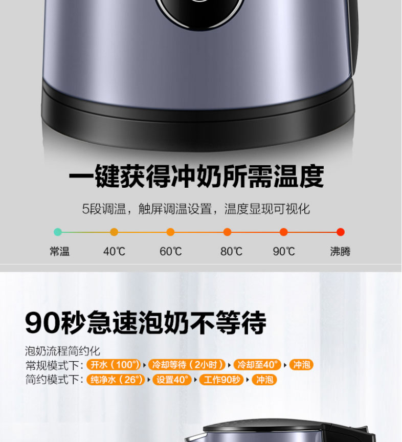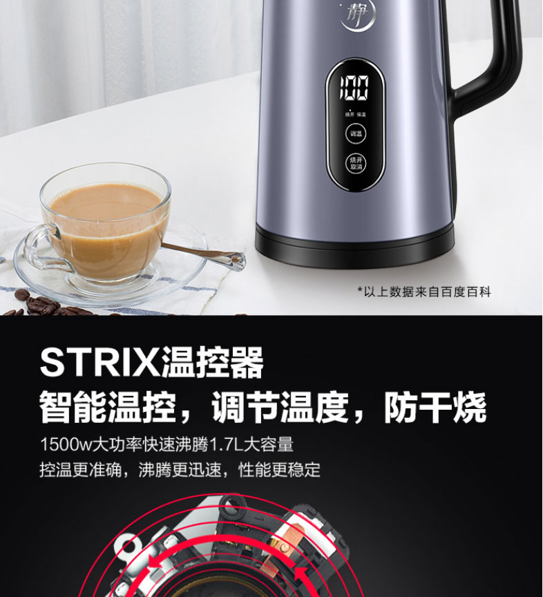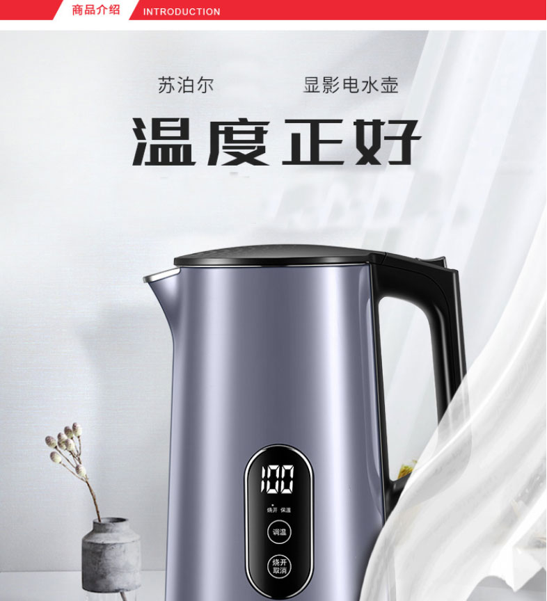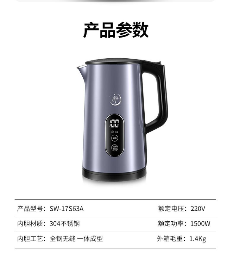 苏泊尔电水壶 壶身显温 触控五段调温 双钢防烫17S63A