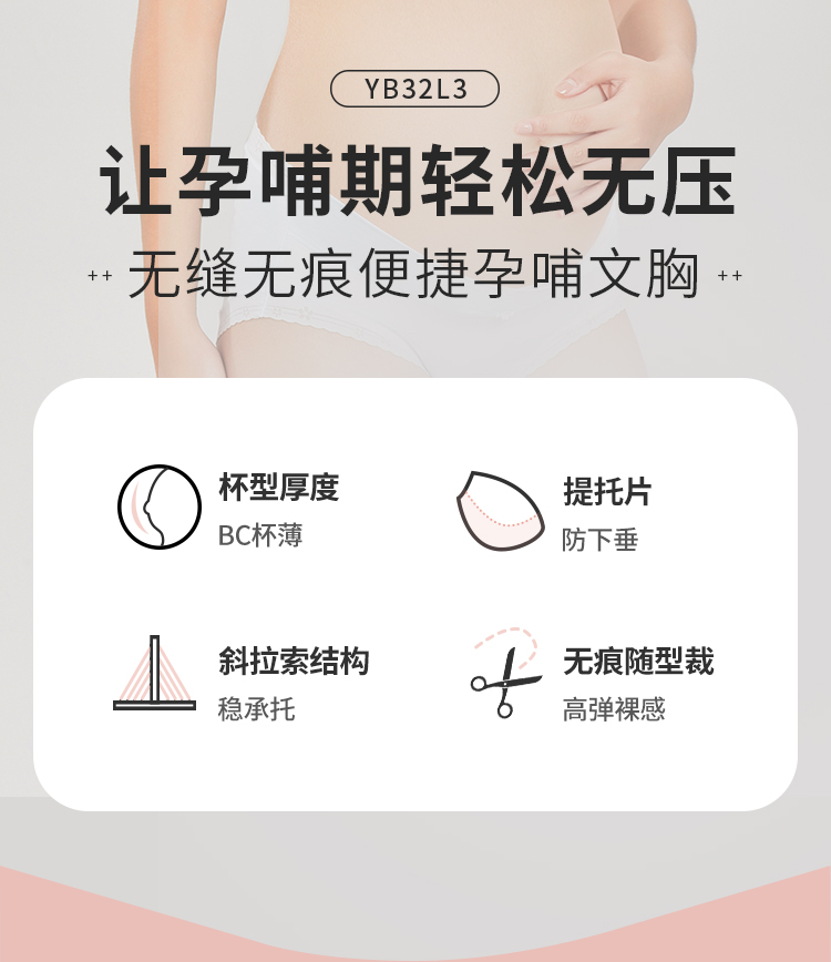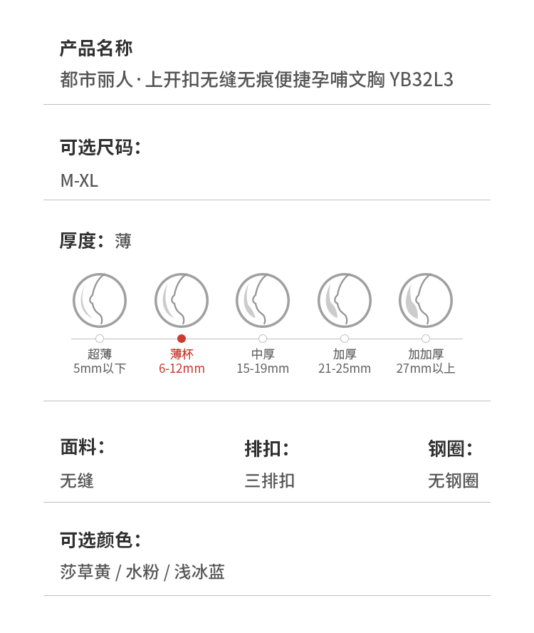都市丽人快乐妈咪内衣无尺码薄3/4杯无缝面料文胸三排无钢圈YB32L3