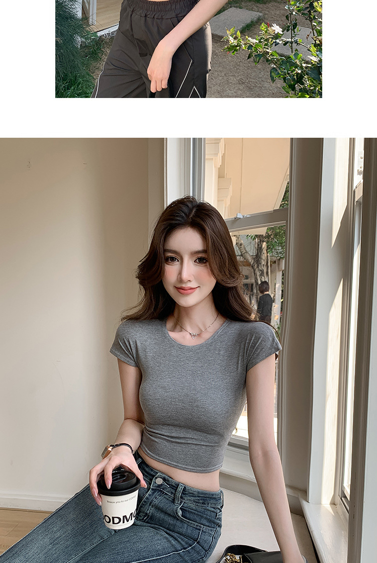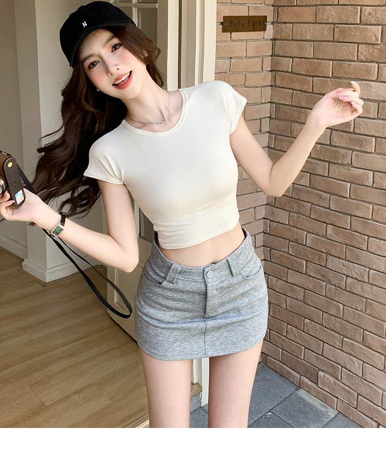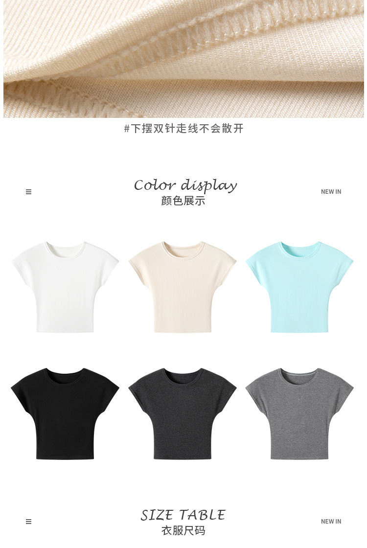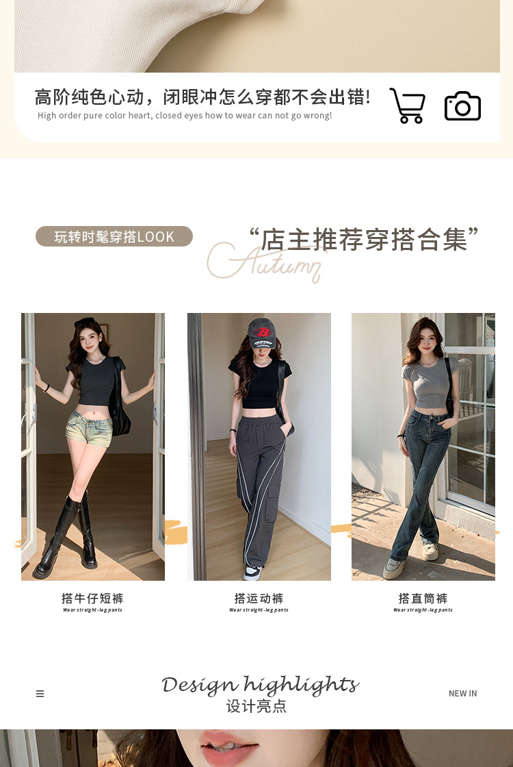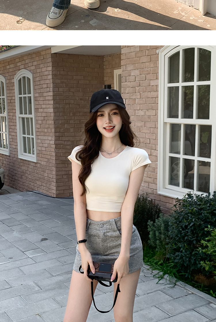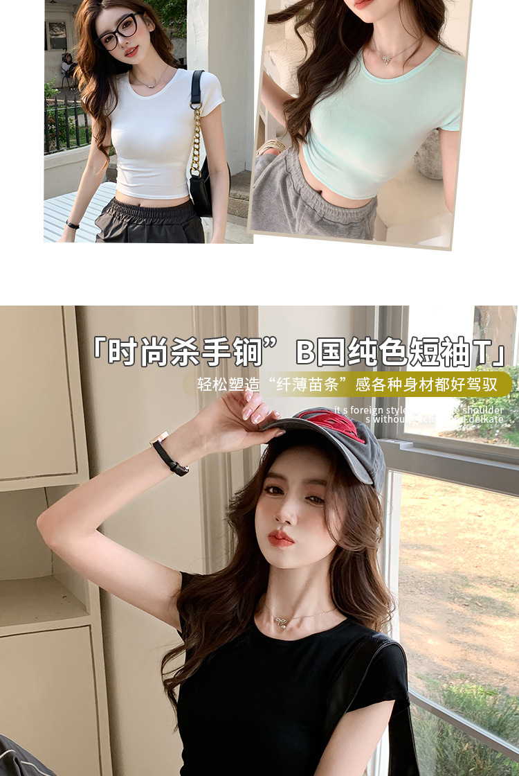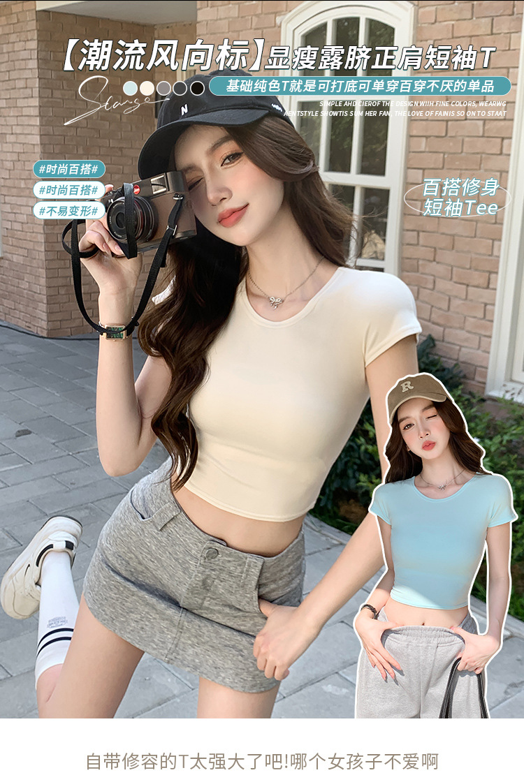 买一送一修身露脐上衣设计简约夏季短袖感休闲百搭短款t恤女新款辣妹