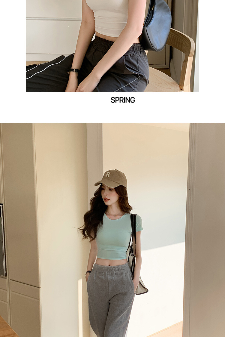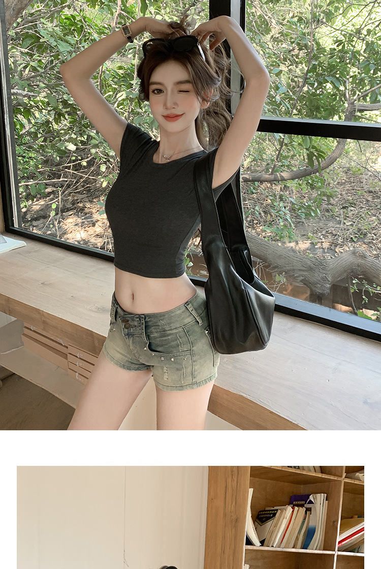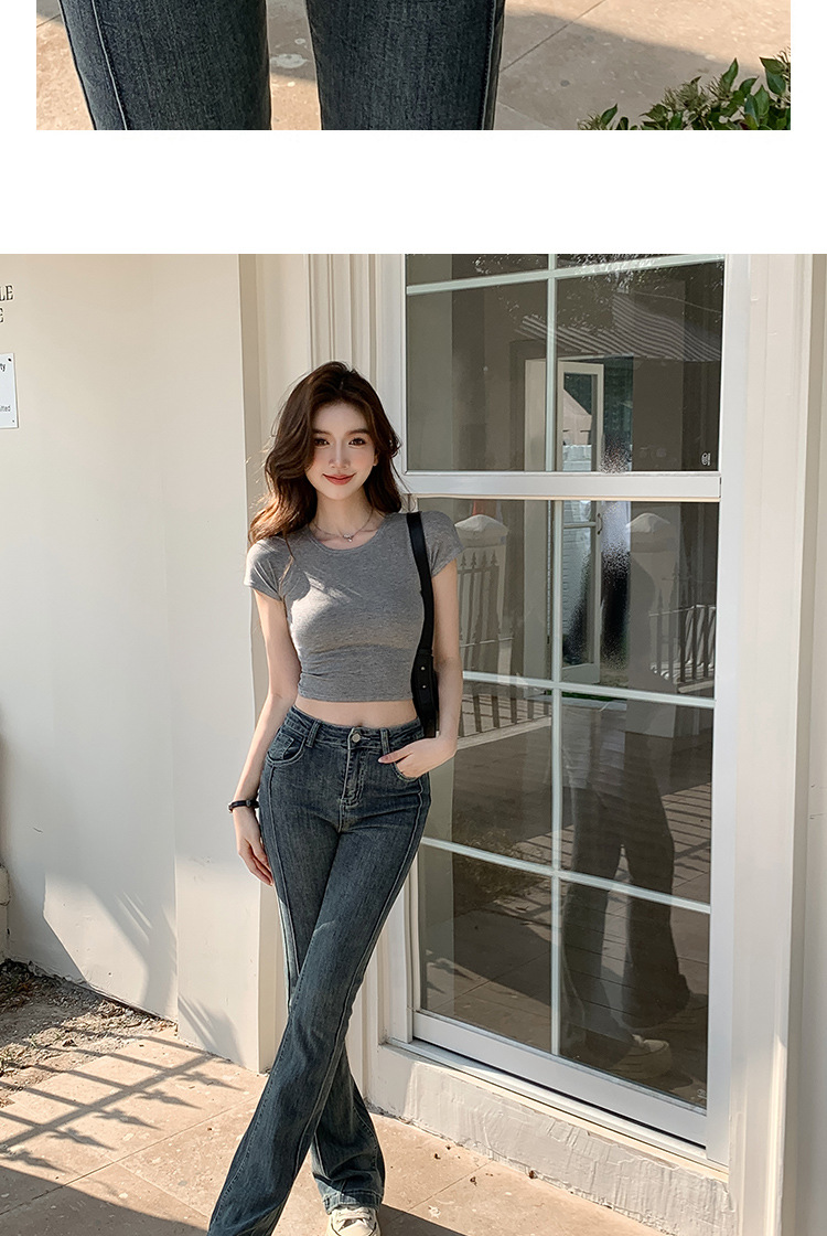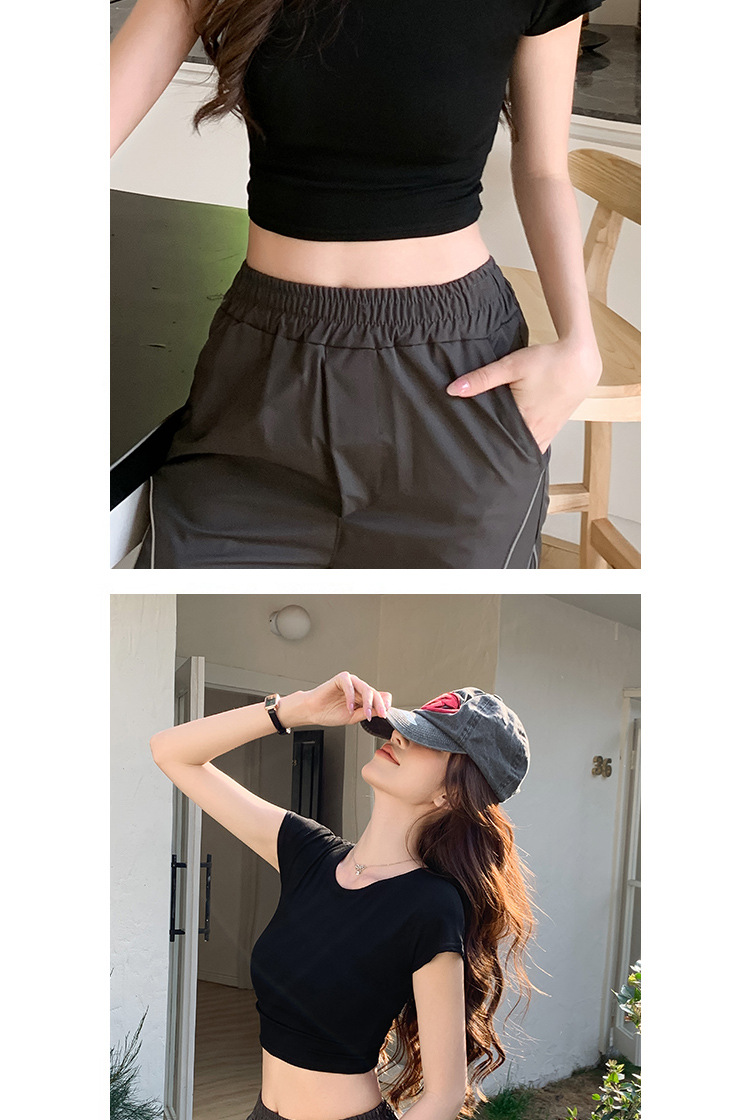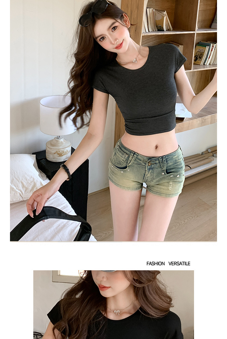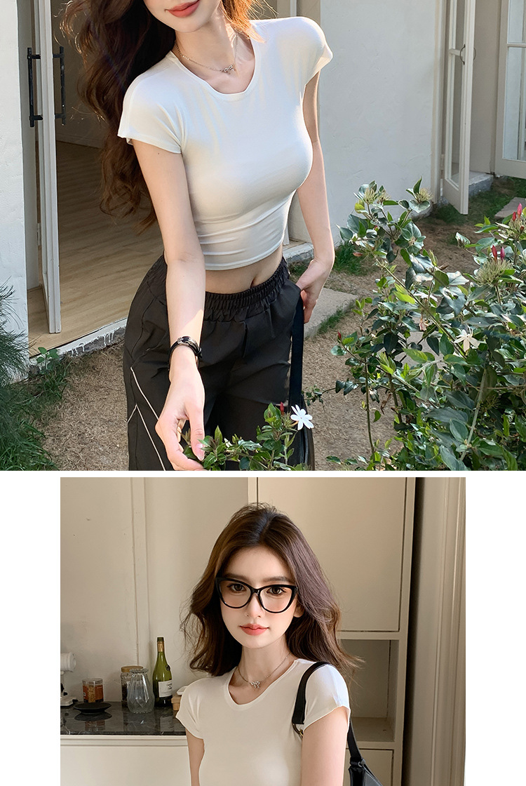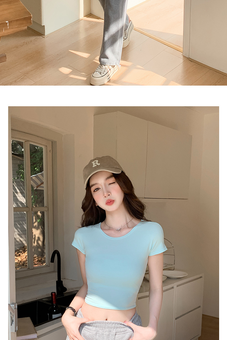 买一送一修身露脐上衣设计简约夏季短袖感休闲百搭短款t恤女新款辣妹
