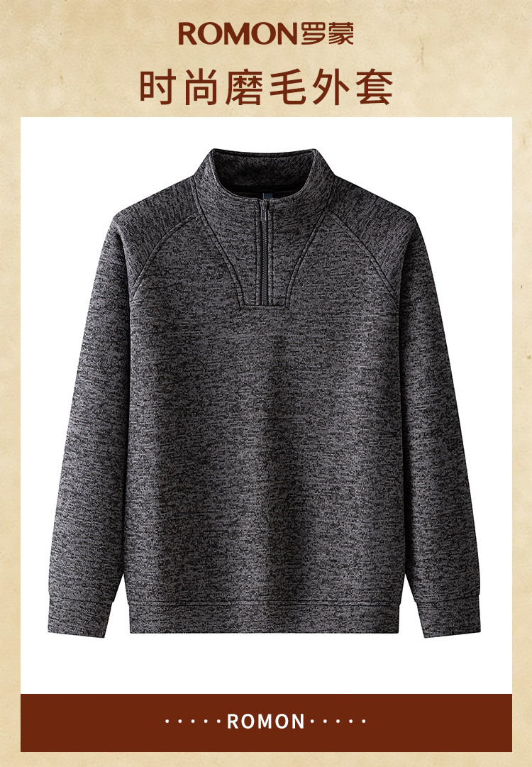 【半拉链立领】罗蒙男士外套膨体花纱外套男舒适百搭磨毛套头男拉链卫衣