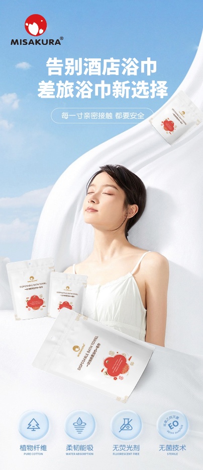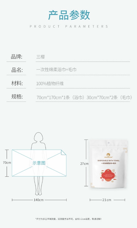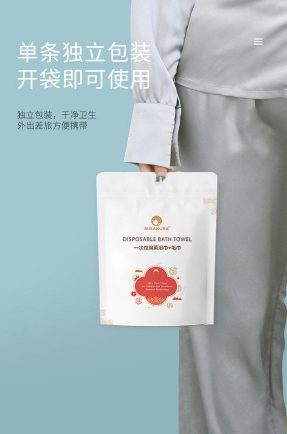 三樱MISAKURA一次性绵柔浴巾毛巾套装 (二包毛巾+一包浴巾)加大加厚独立包装