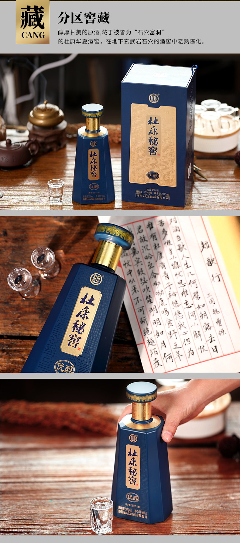 杜康秘窖优醇50度500ml*6瓶古窖自然醇浓香型商务宴请送礼白酒