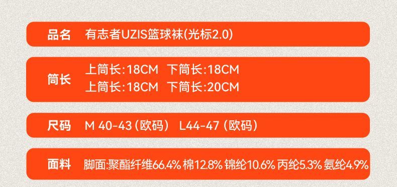 【积分兑换】有志者UZIS男款精英篮球袜运动实战美式专业力量跑步长筒光标2.0