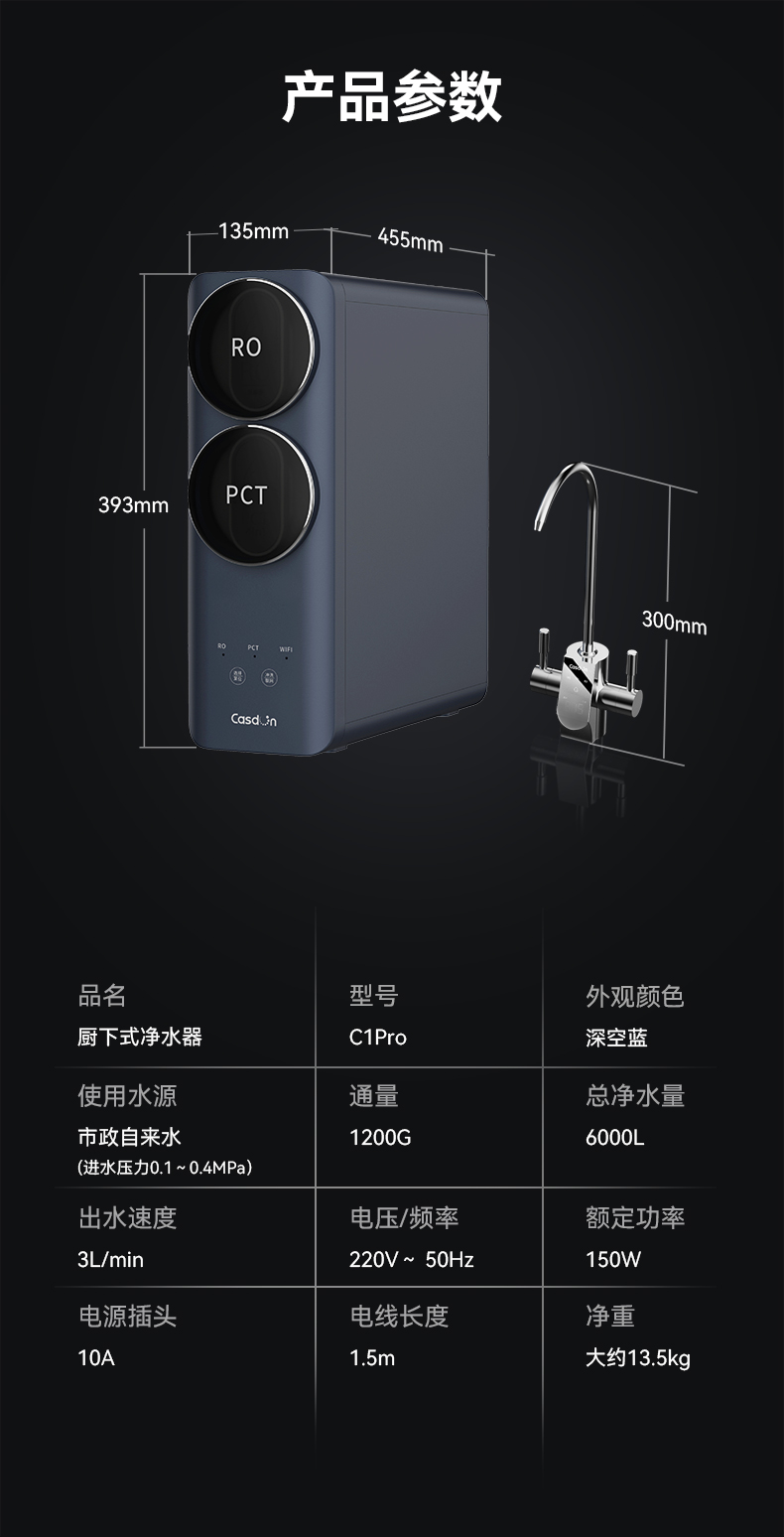 凯度C1pro厨下净水机RO反渗透1200G厨下净水机