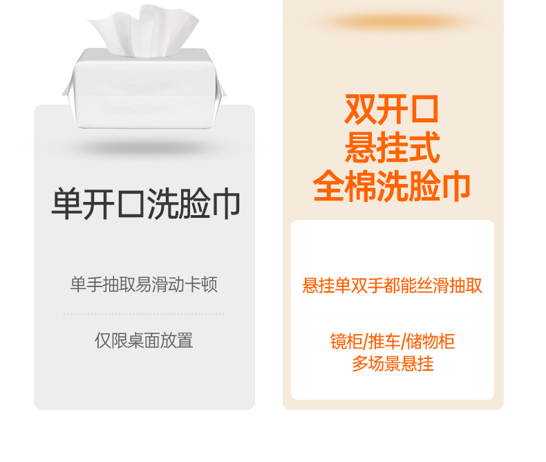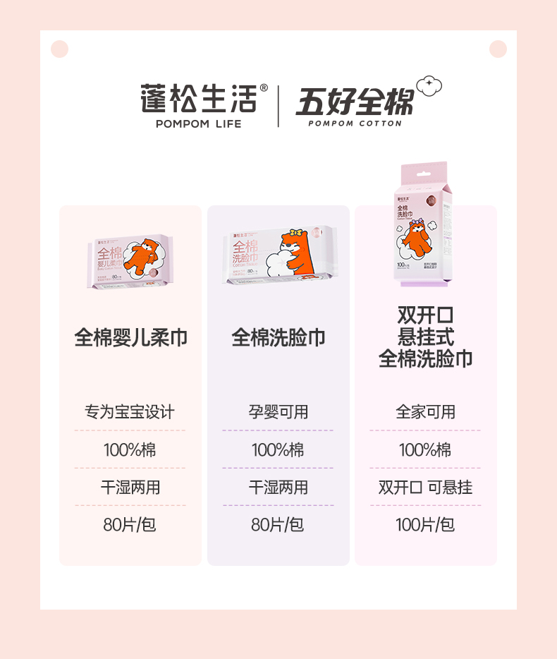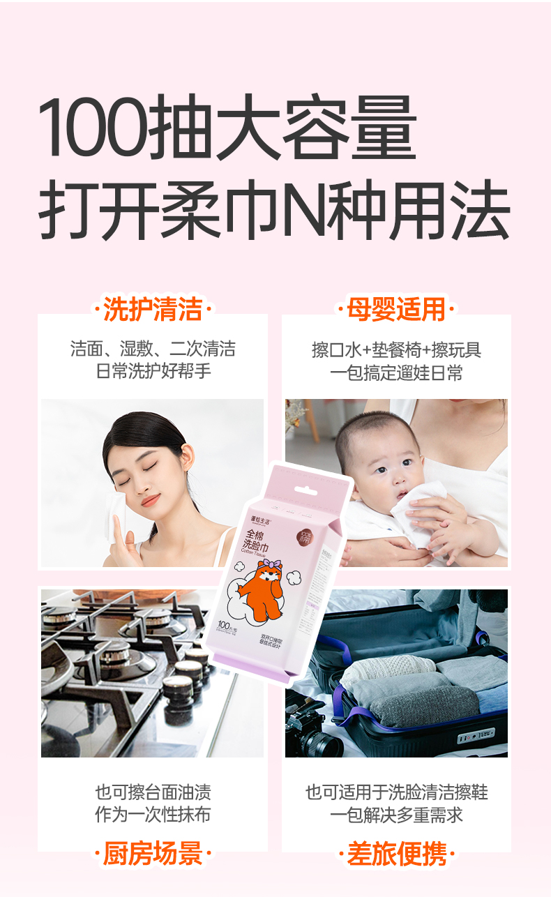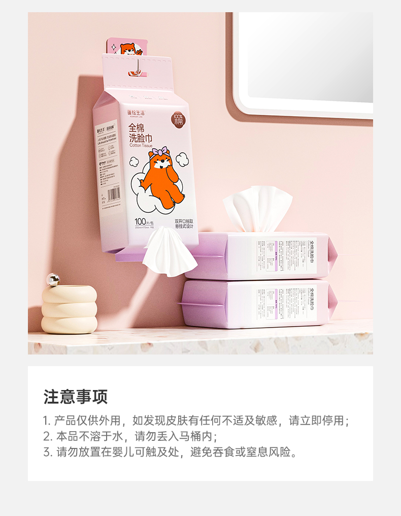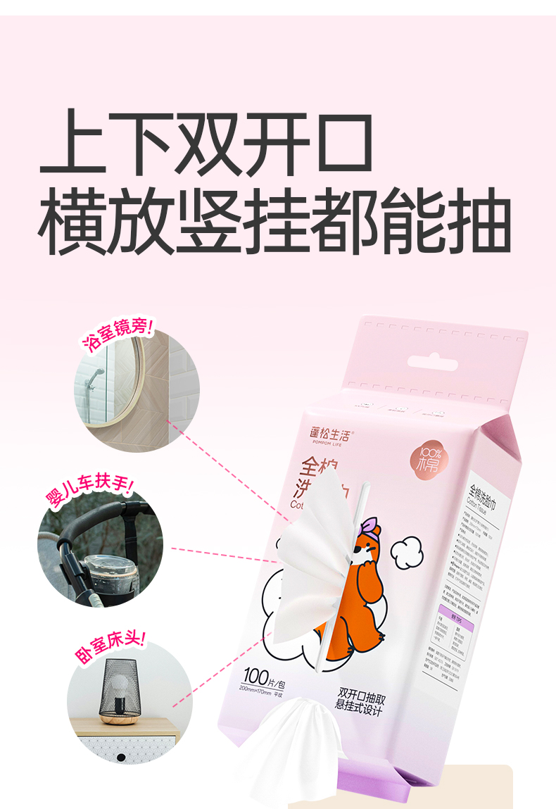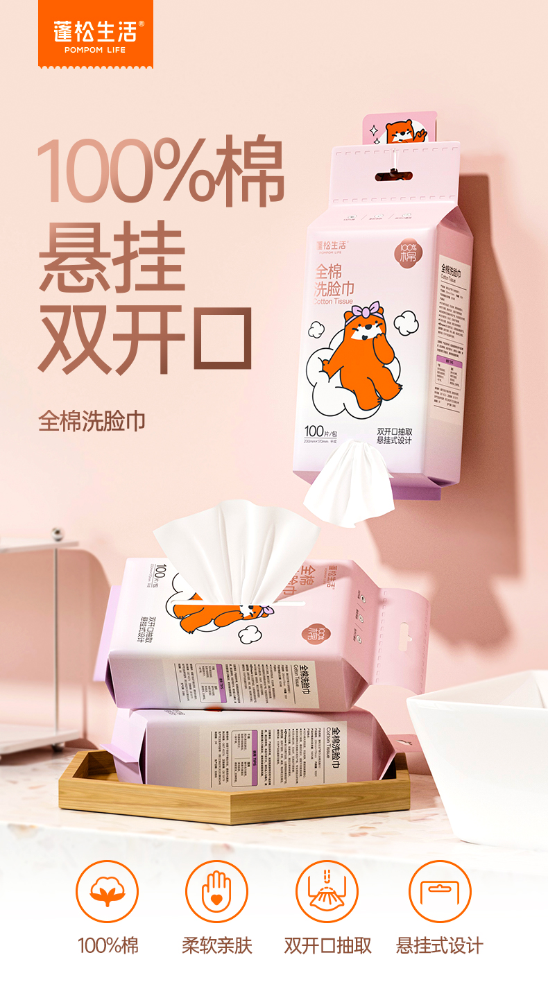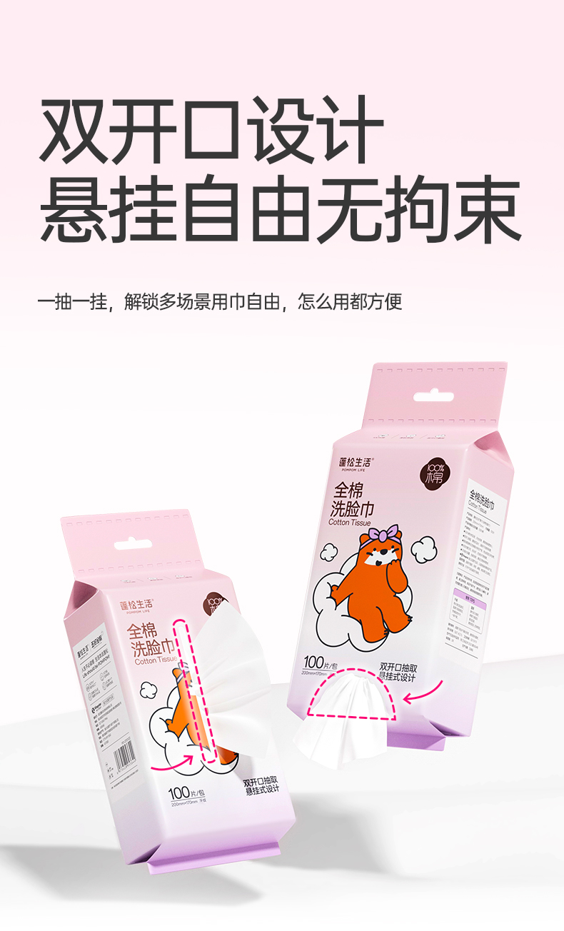 蓬松生活全棉悬挂袋装洗脸巾100抽/提