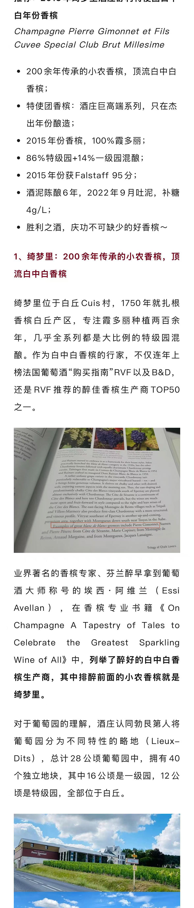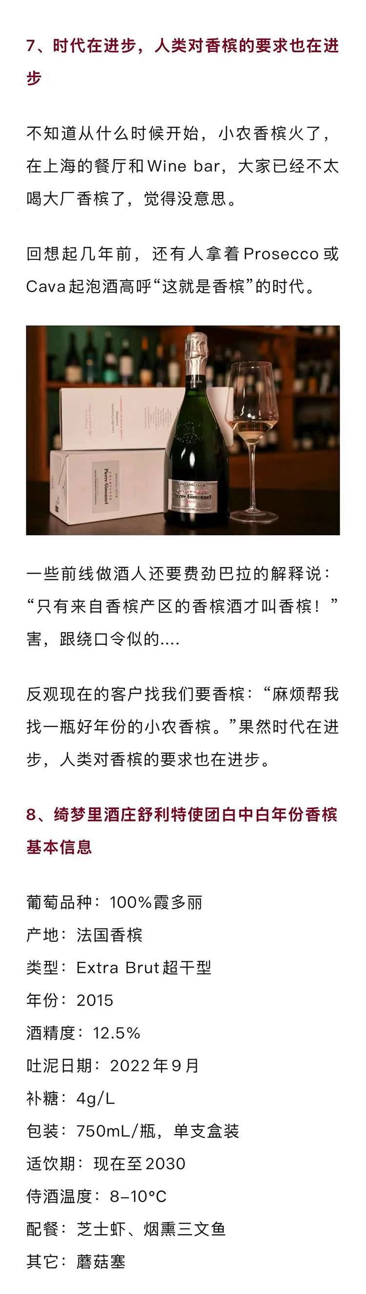 法国2015年绮梦里酒庄舒利特使团白中白年份香槟