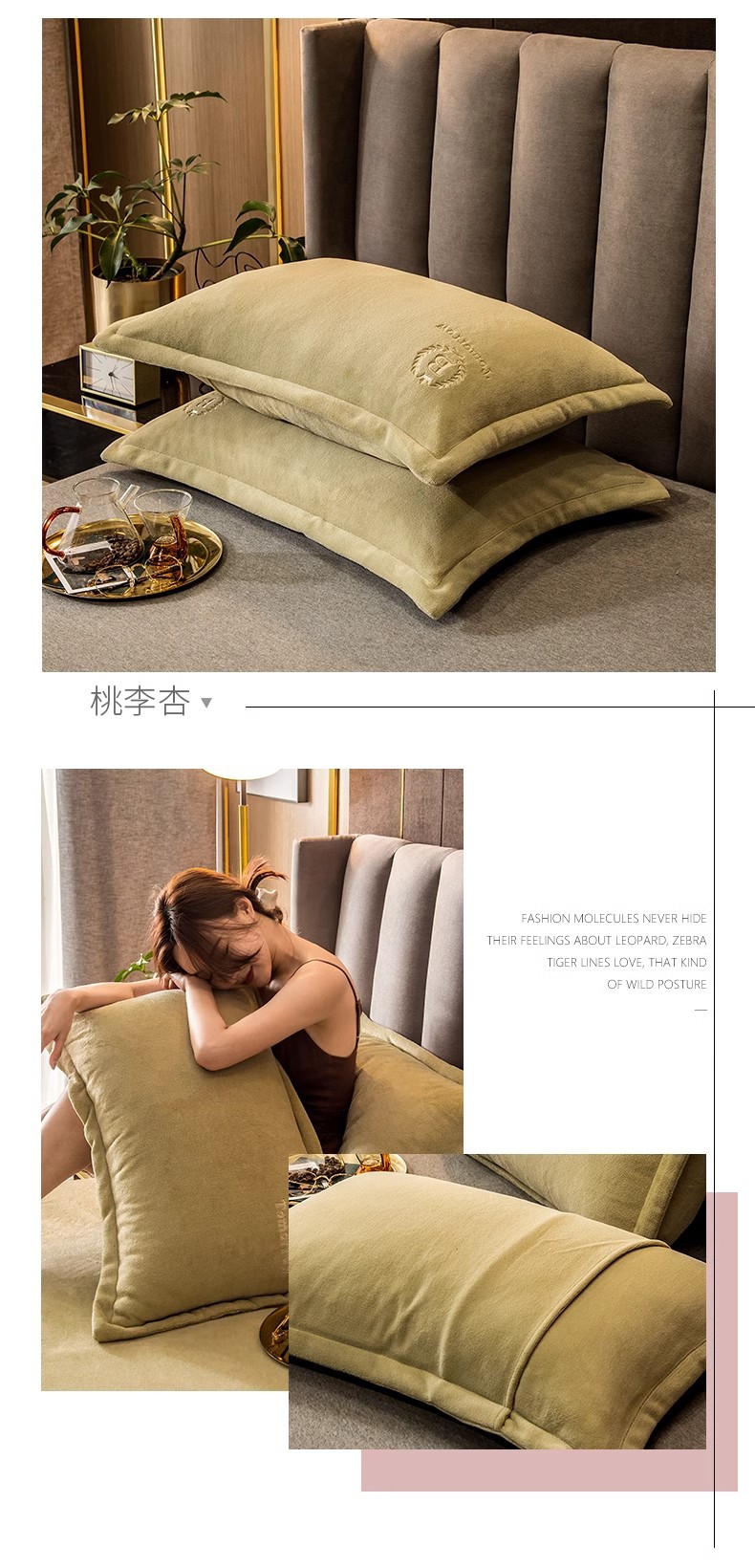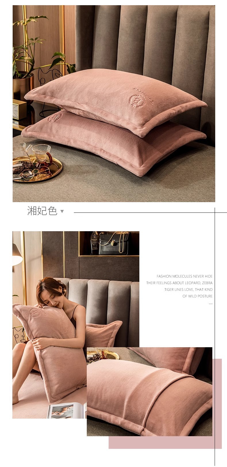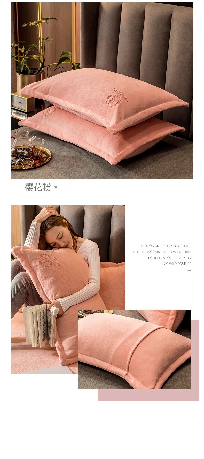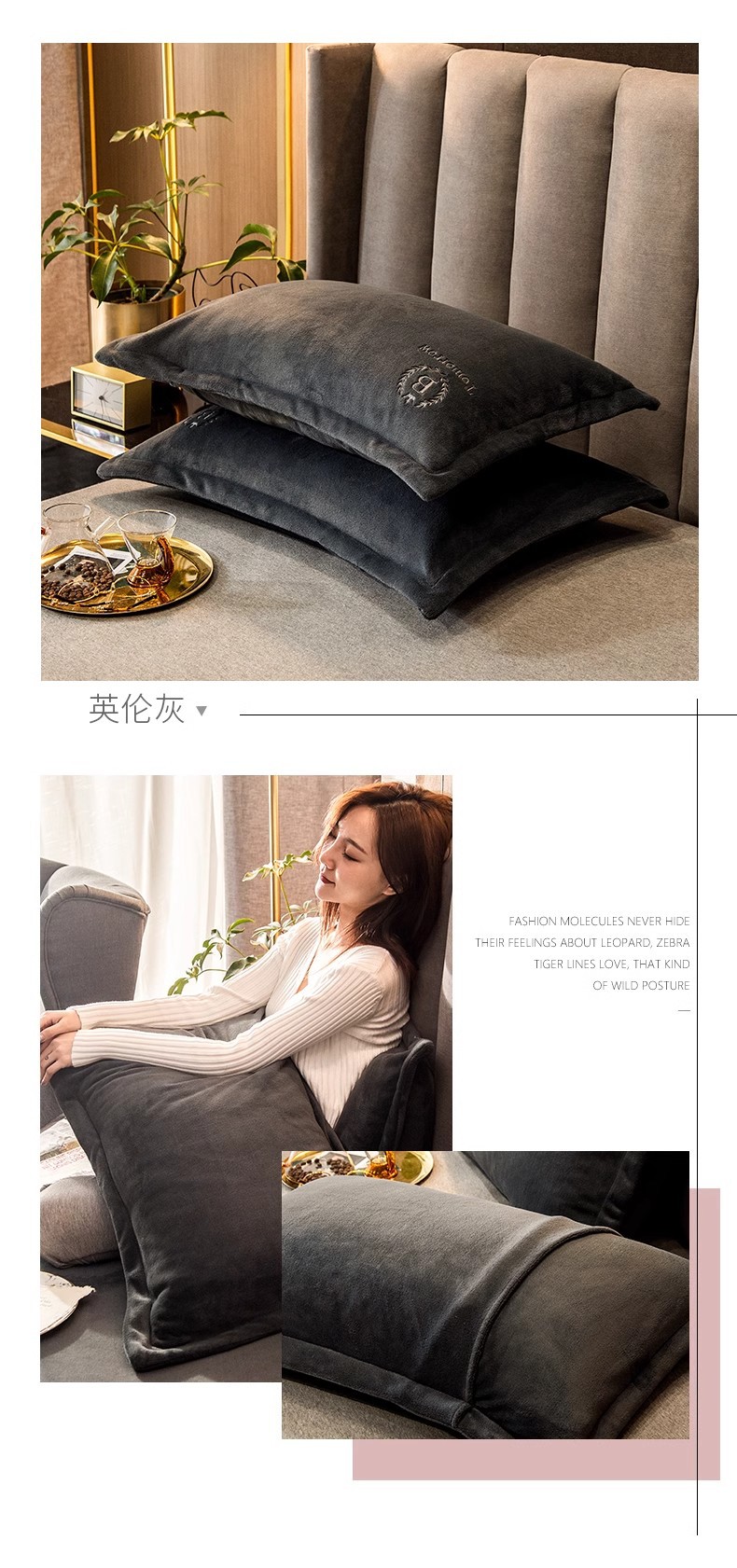 牛奶绒枕套带枕芯冬季刺绣款纯色加绒加厚保暖家用卧室枕芯内胆套