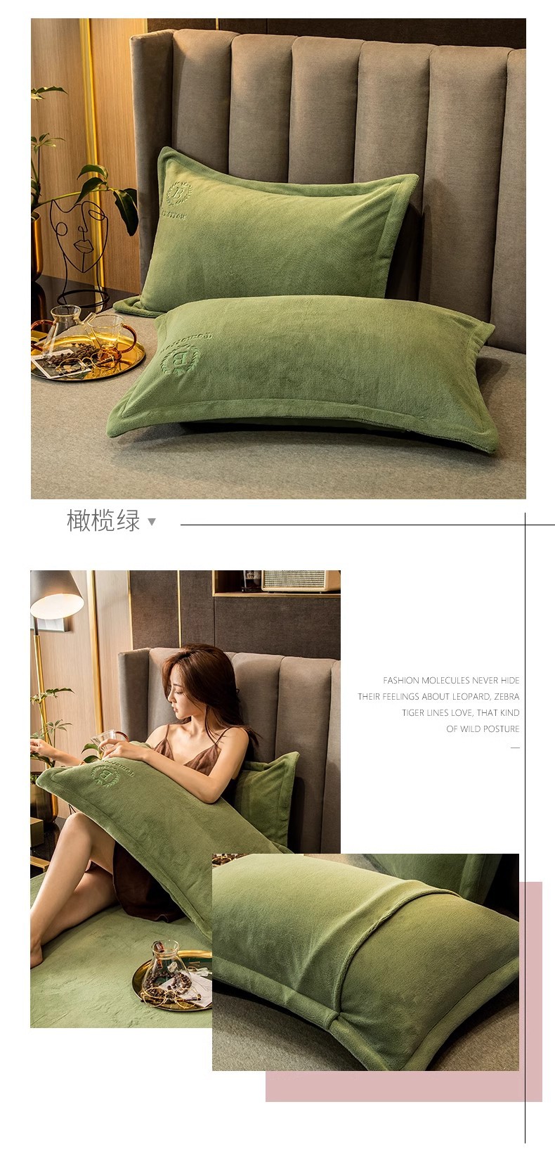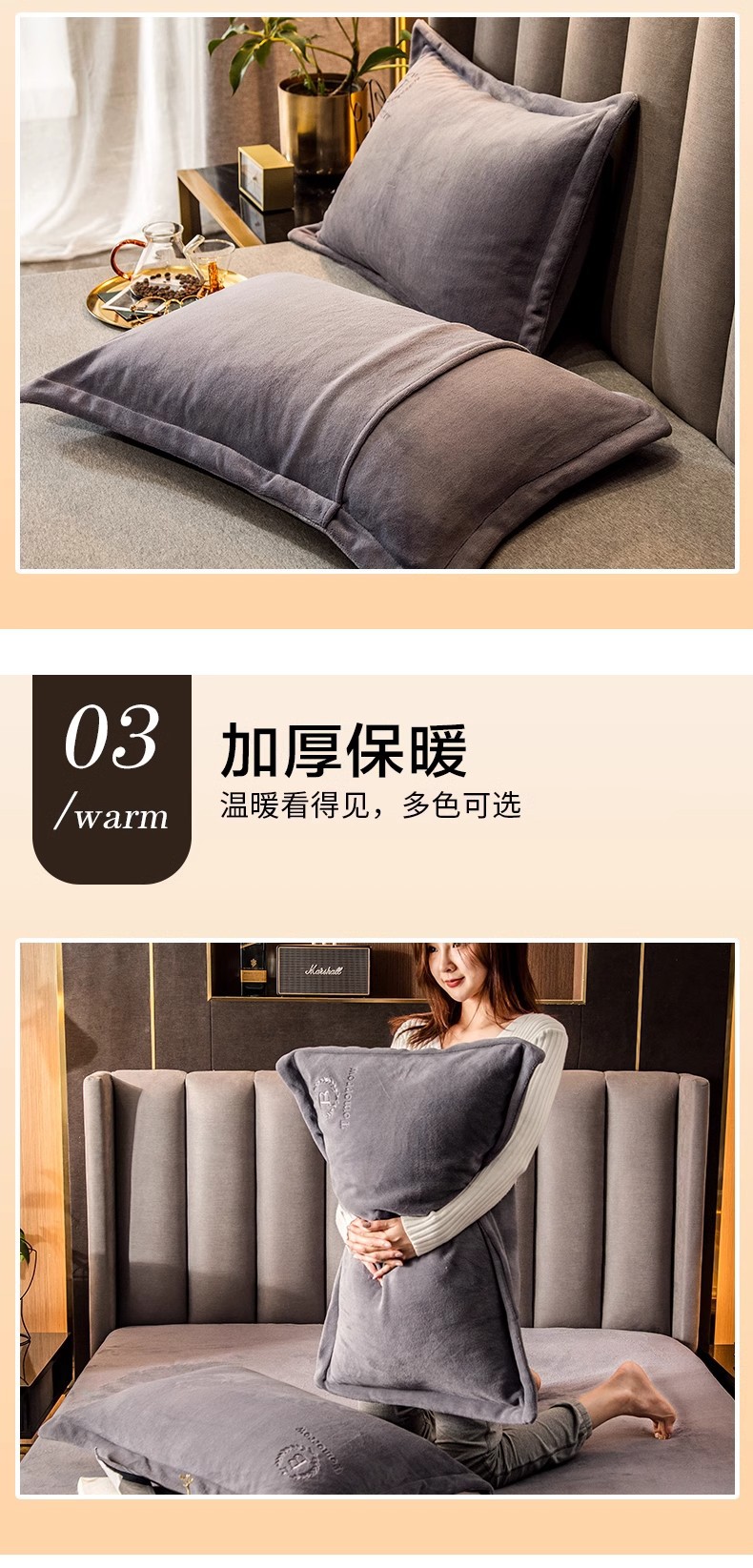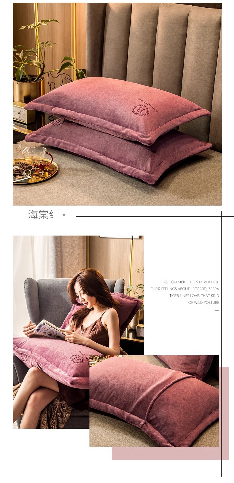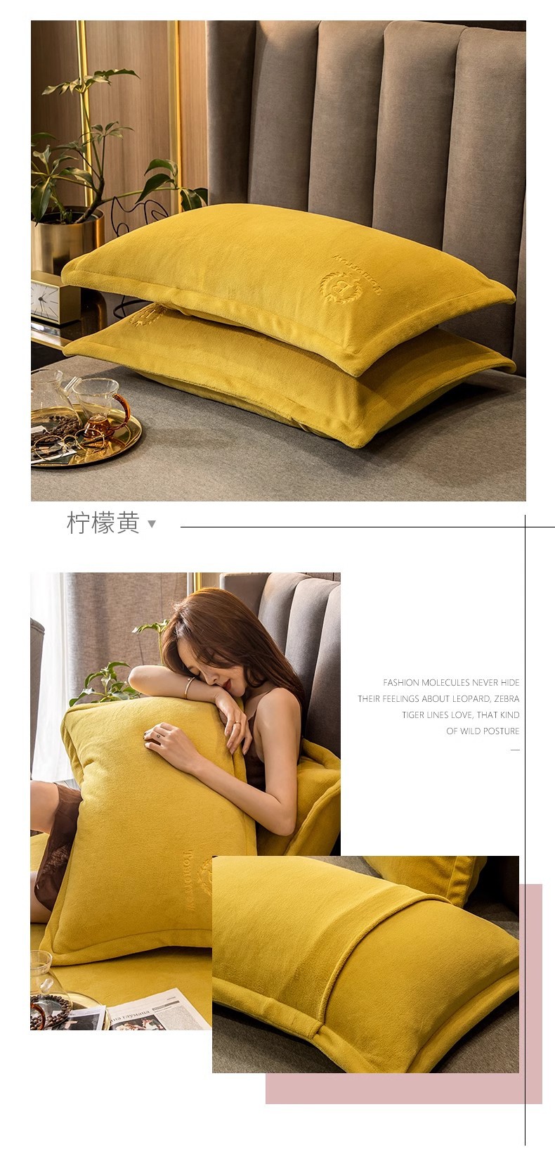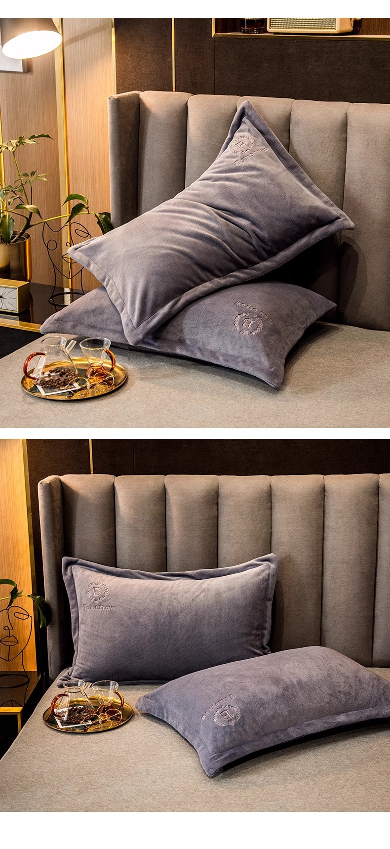 牛奶绒枕套带枕芯冬季刺绣款纯色加绒加厚保暖家用卧室枕芯内胆套