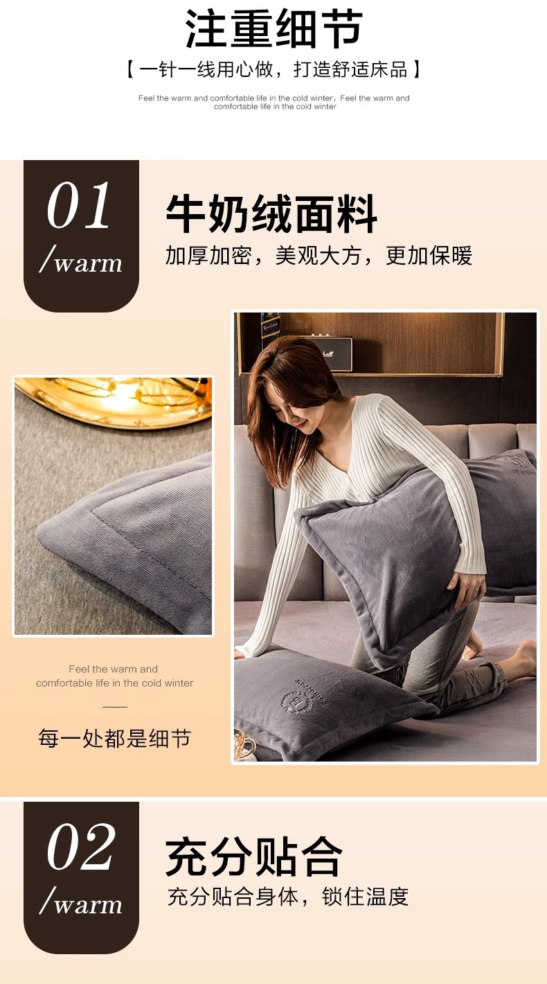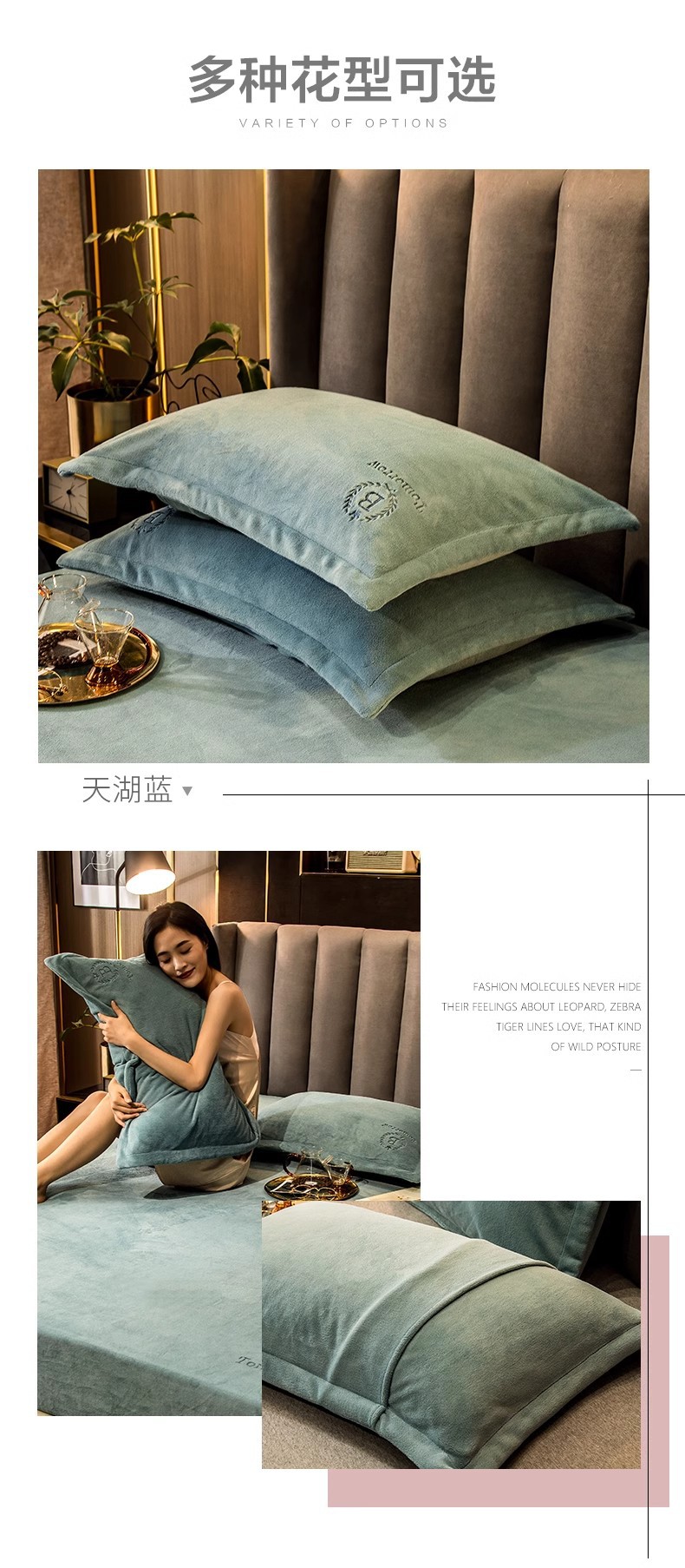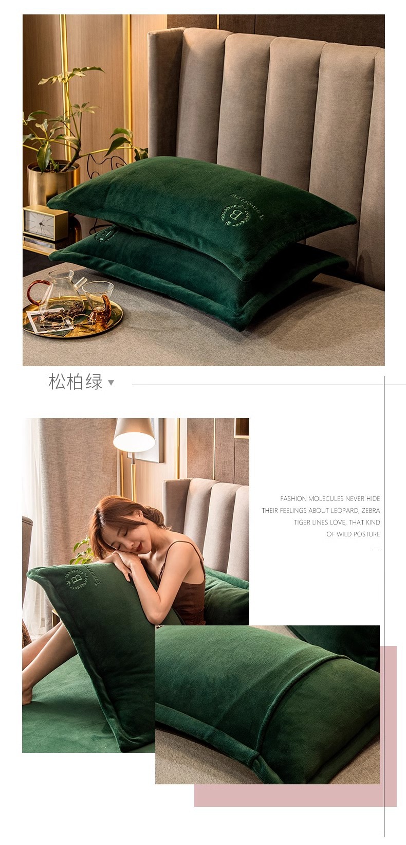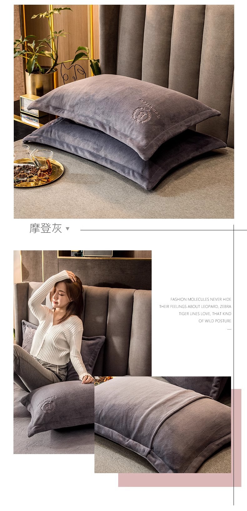 牛奶绒枕套带枕芯冬季刺绣款纯色加绒加厚保暖家用卧室枕芯内胆套