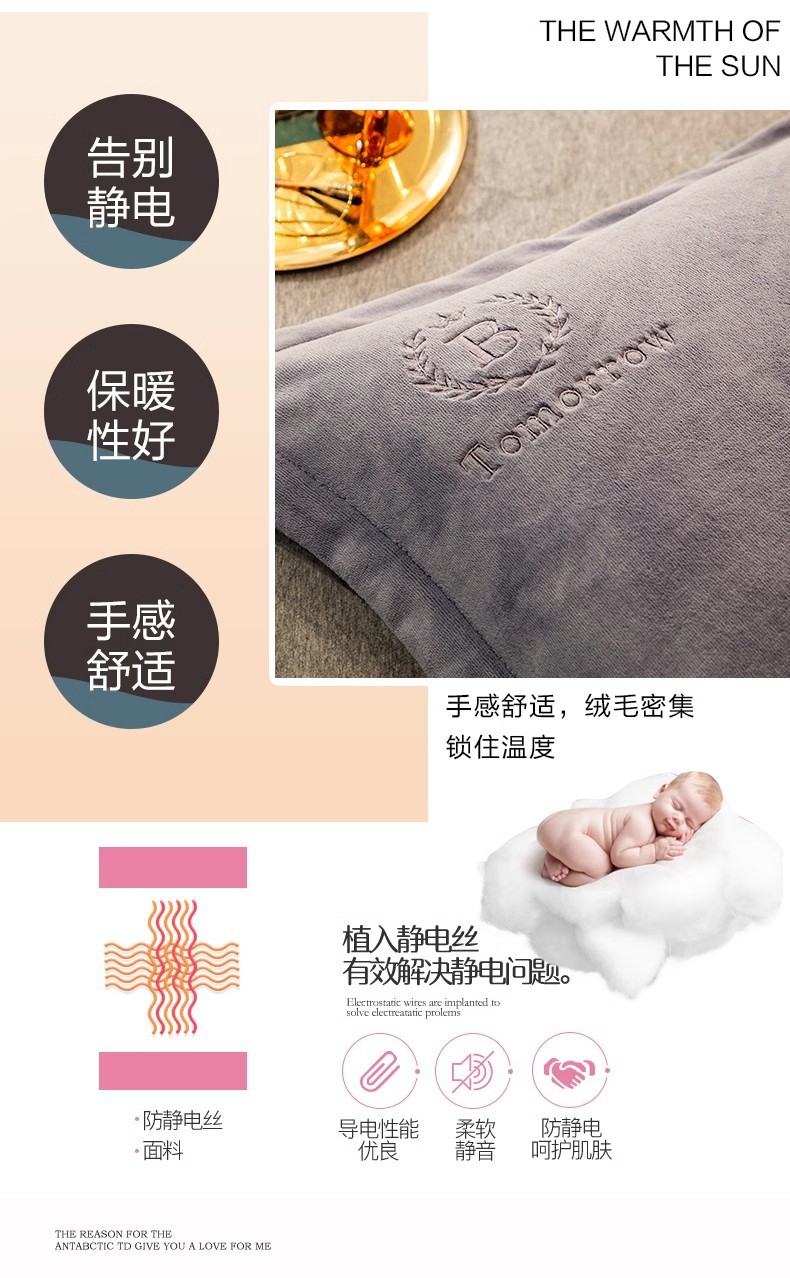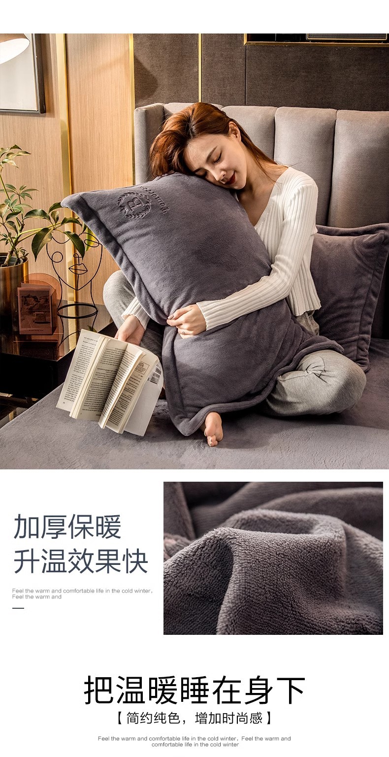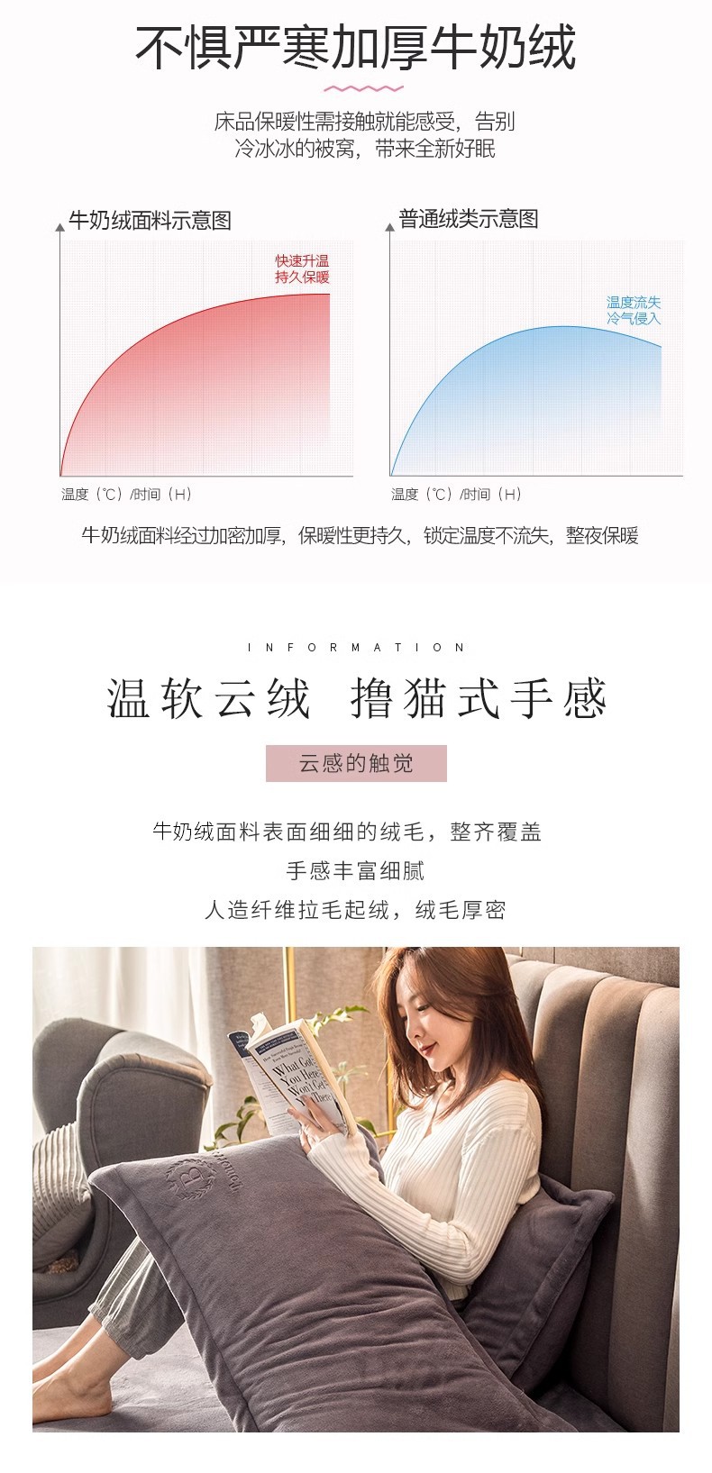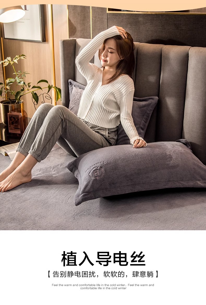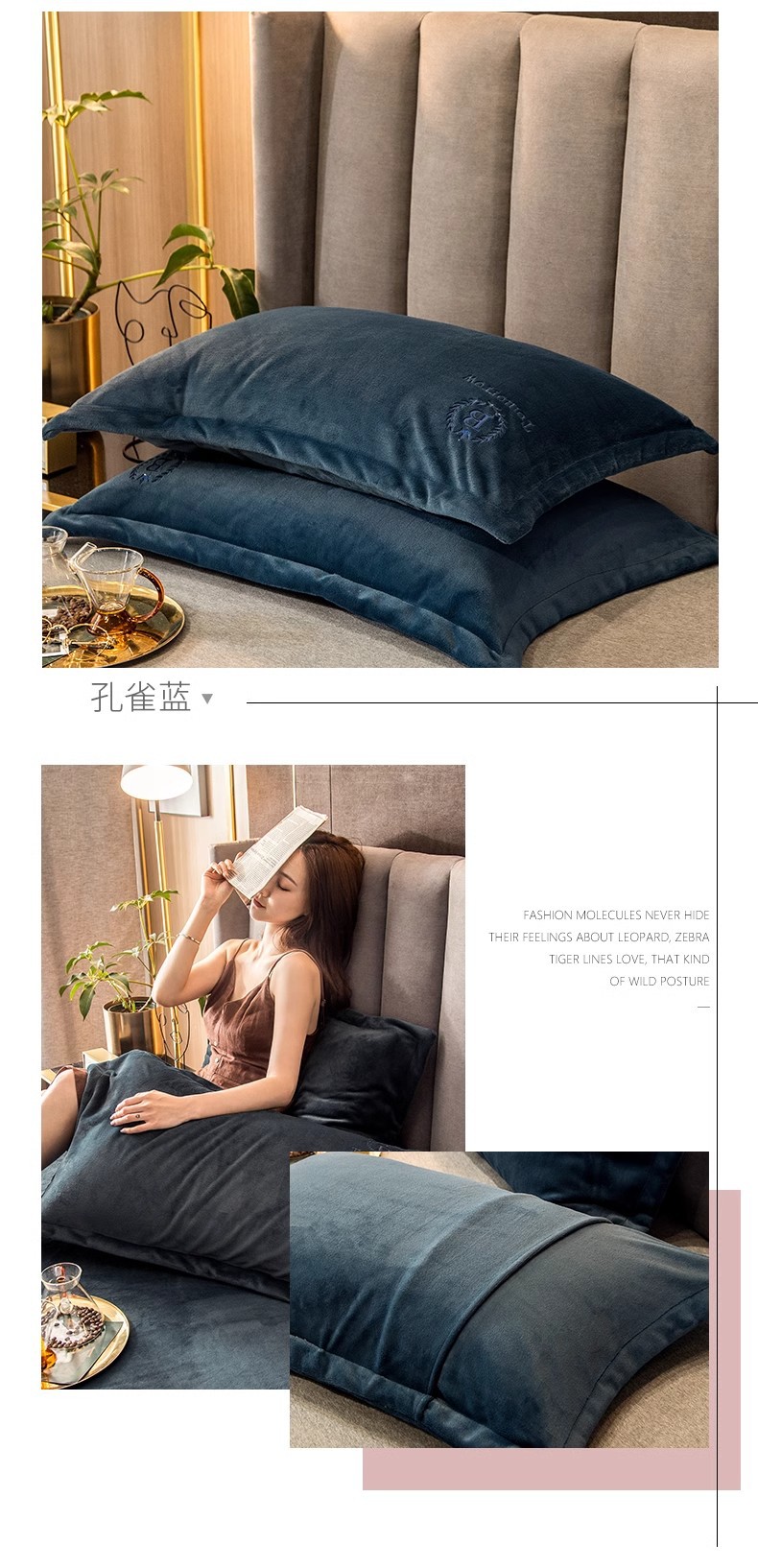 牛奶绒枕套带枕芯冬季刺绣款纯色加绒加厚保暖家用卧室枕芯内胆套