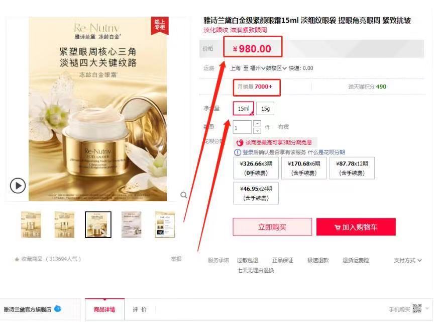 雅诗兰黛白金眼霜15ml正装官网价格高达980!
