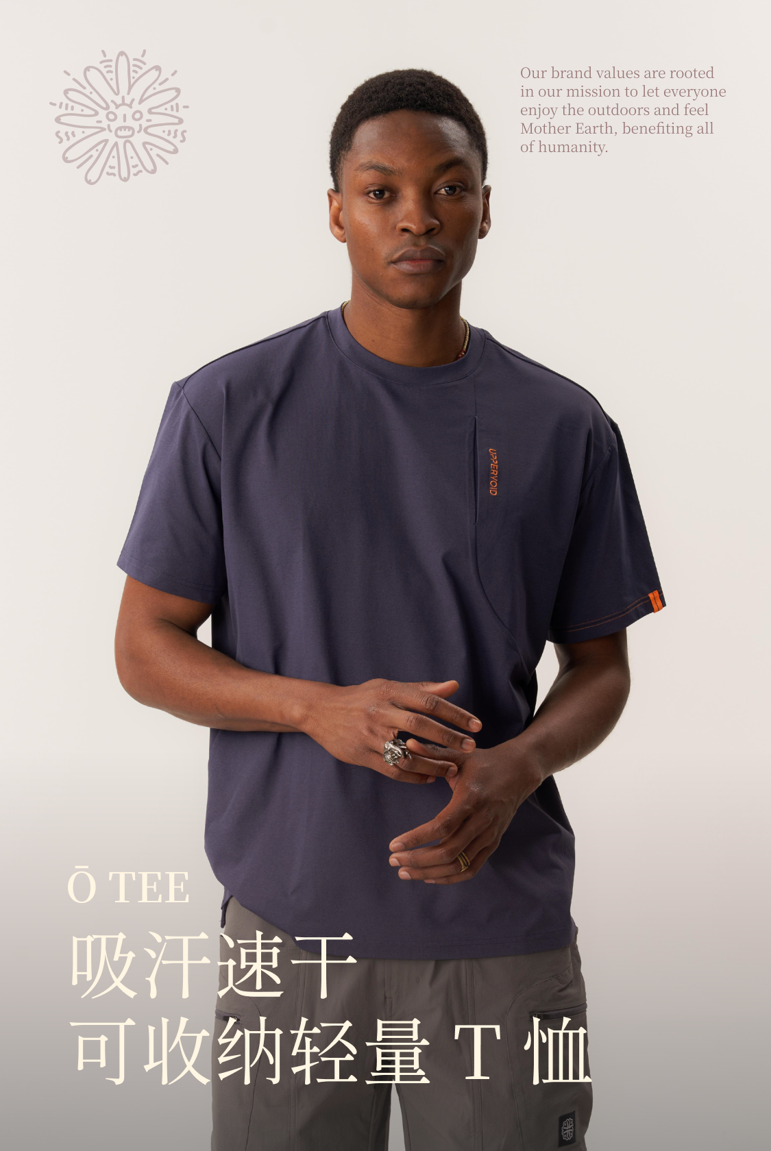 收纳轻量T恤印花仿棉透气吸汗速干短袖男女款UPPERVOID二普纬度