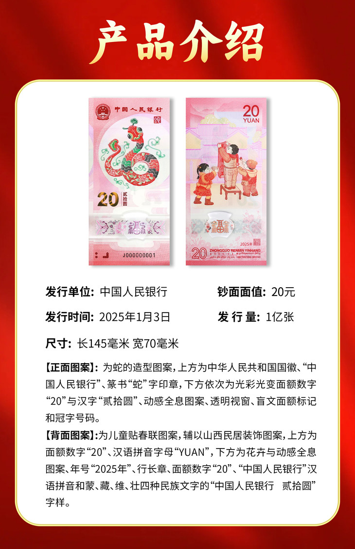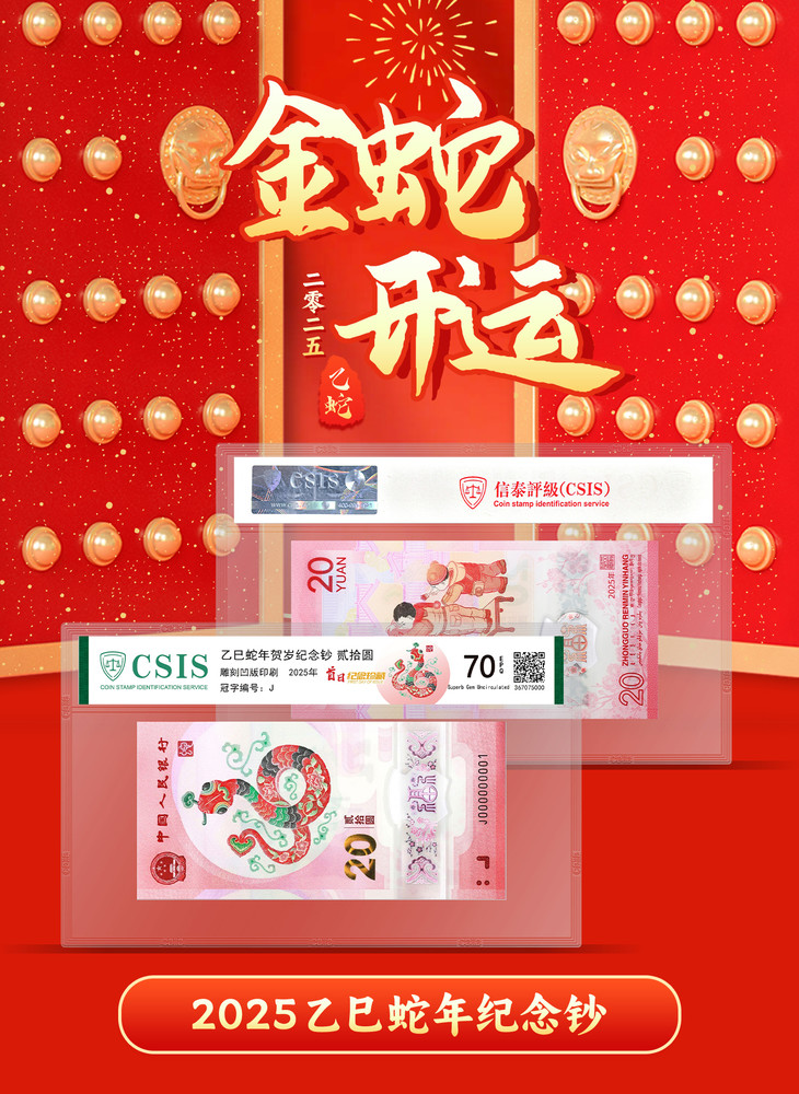 2025蛇年生肖纪念钞 首日满分70分评级