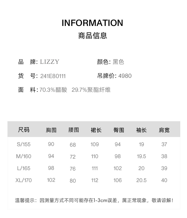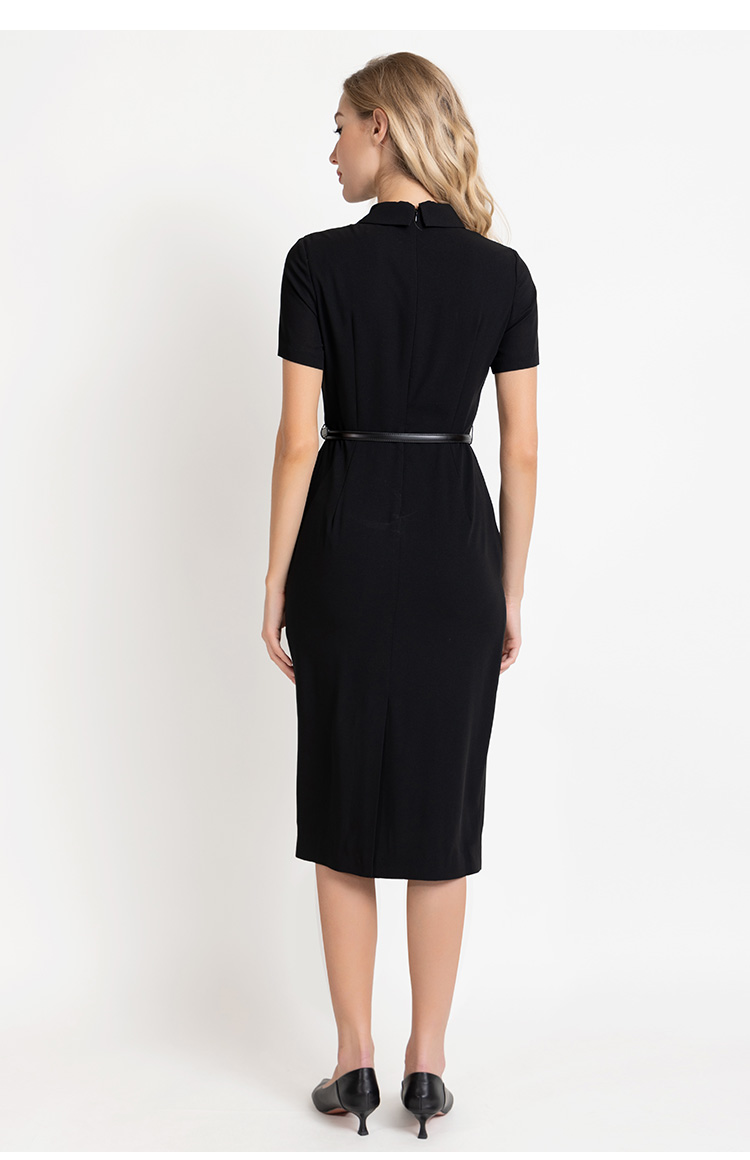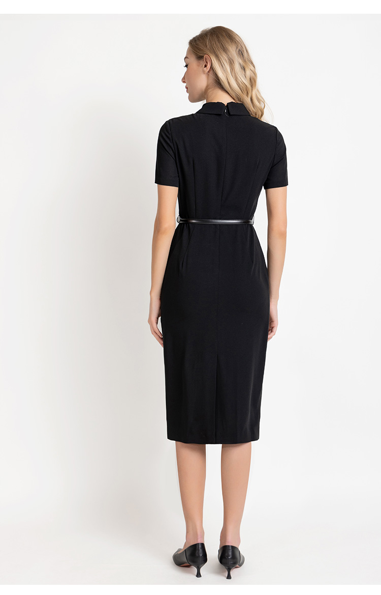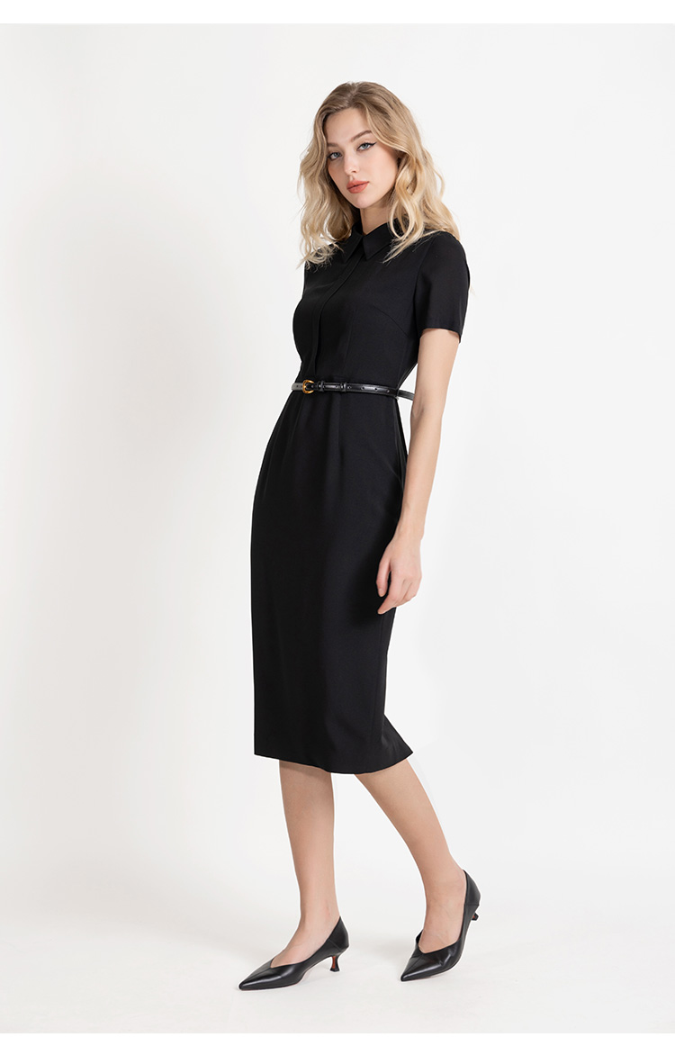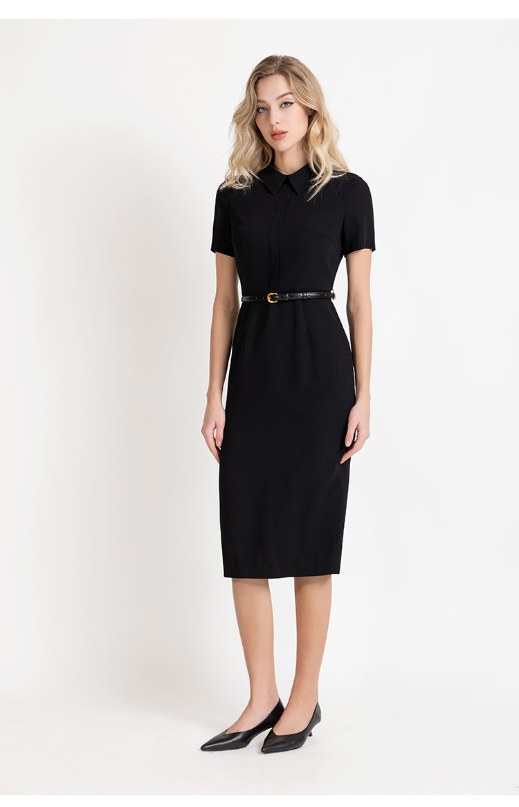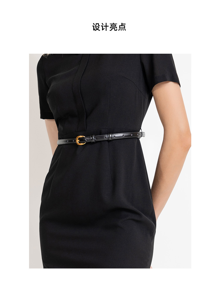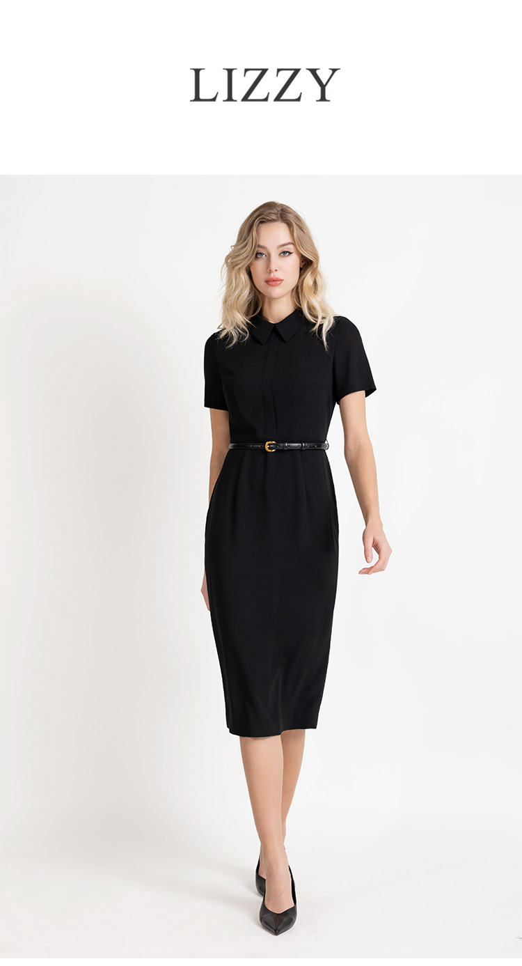 LIZZY新款优雅气质通勤修身显瘦学院领赫本风连衣裙配腰带