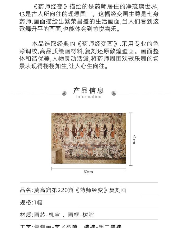 敦煌研究院【药师经变复制画装饰画】博物馆文创礼品 书房客厅摆件
