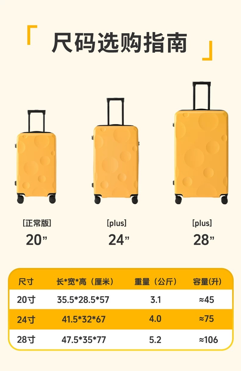 全网爆款的【马卡龙芝士行李箱】来啦❗️少女心炸裂的奶酪造型🧀️ 巨能装+抗造耐用+细节贴心🏆