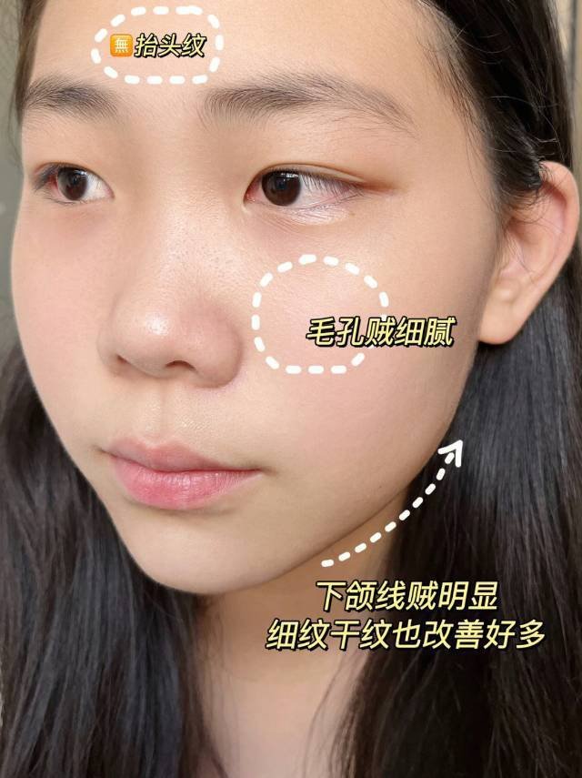 在建立耐受之后坚持使用一段时间,可以发现皮肤出油明显减少,眼角等一些细小的细纹也变淡了,肌肤的含水量有了显著的提升🆙