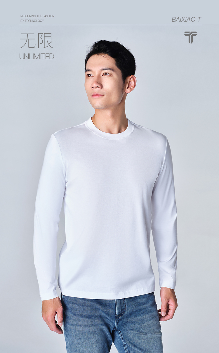 会员-拇指白小T高支压胶长袖T恤无我系列