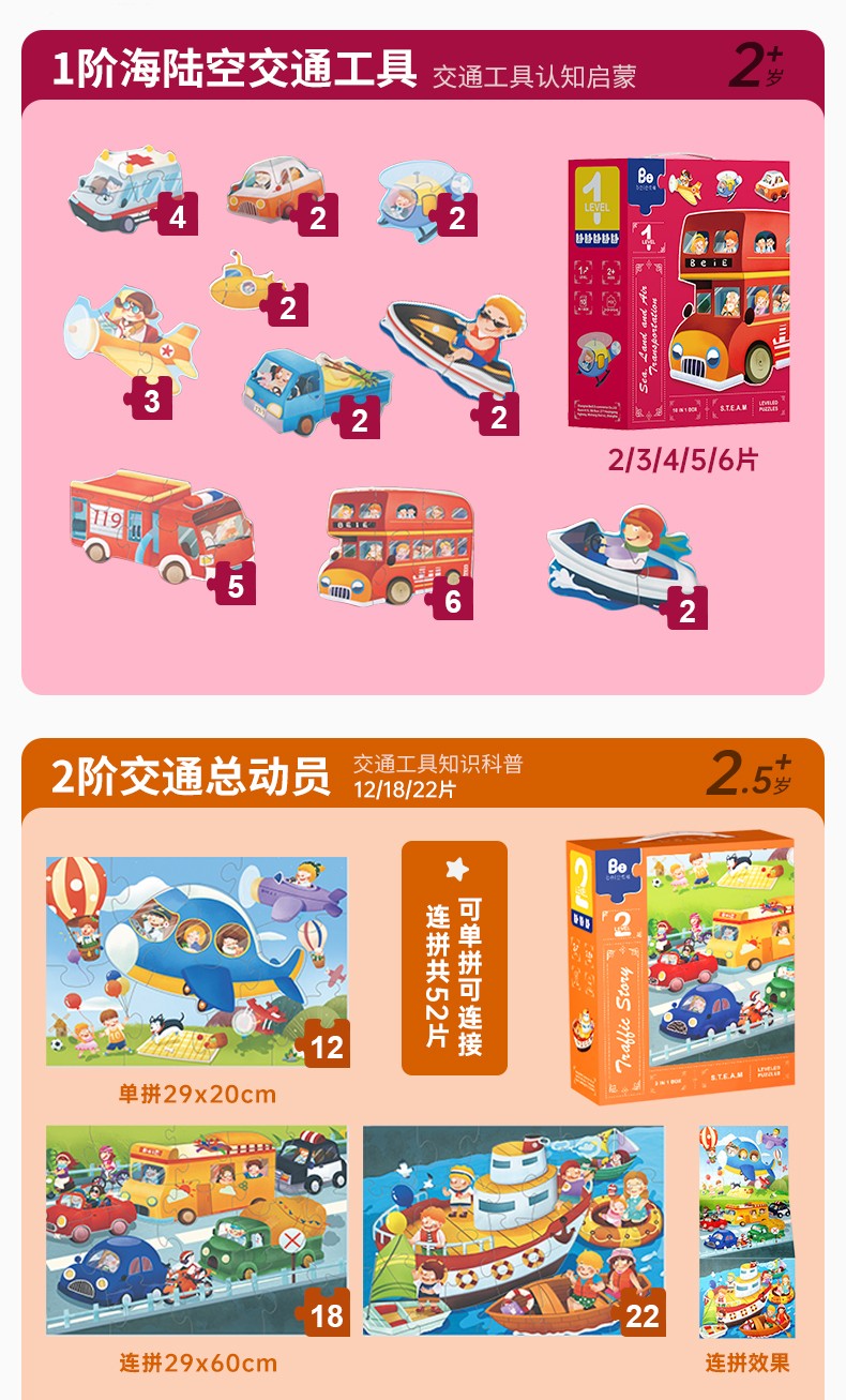 贝易儿童拼图3到6岁进阶益智男孩女孩宝宝幼儿玩具1-2-4地图拼图5