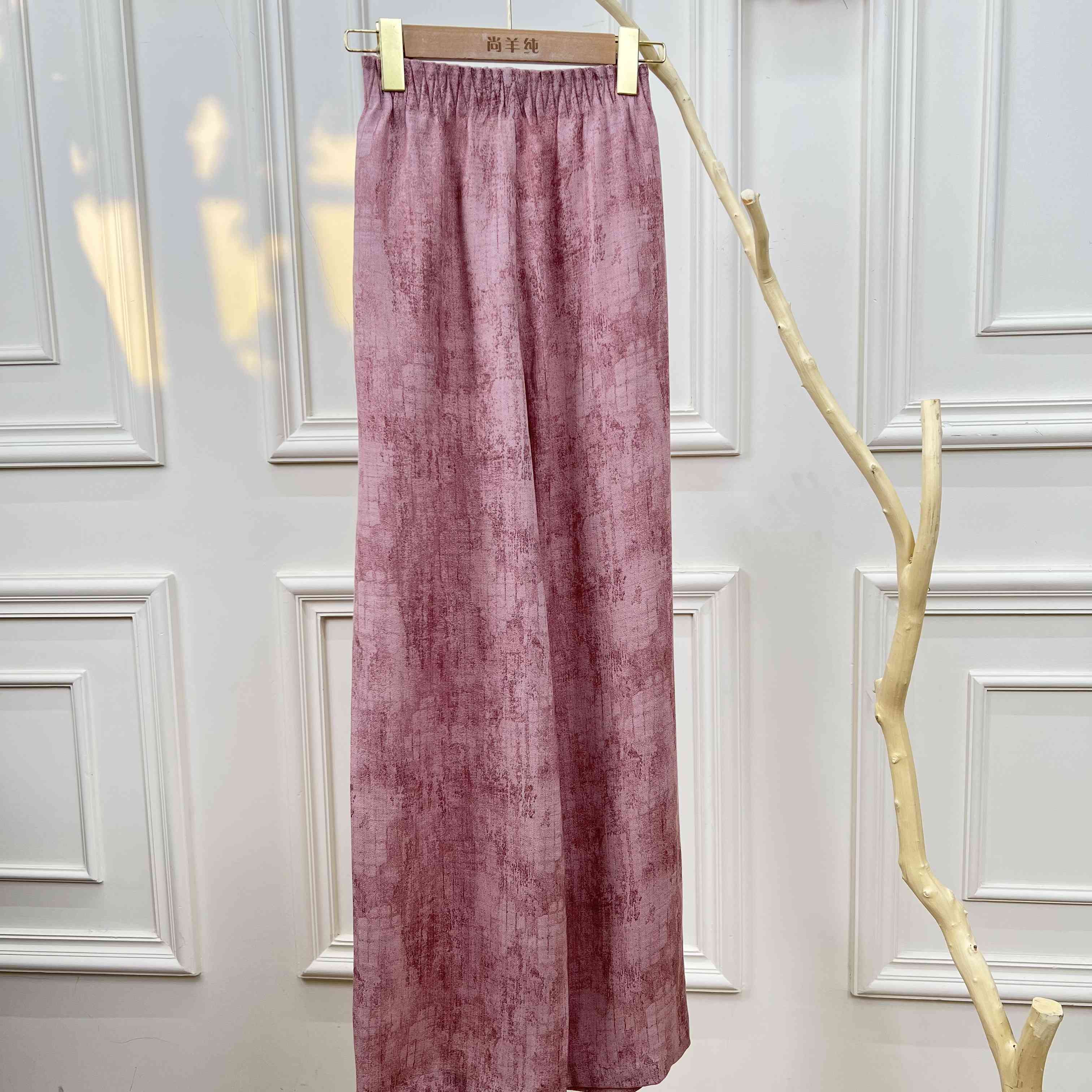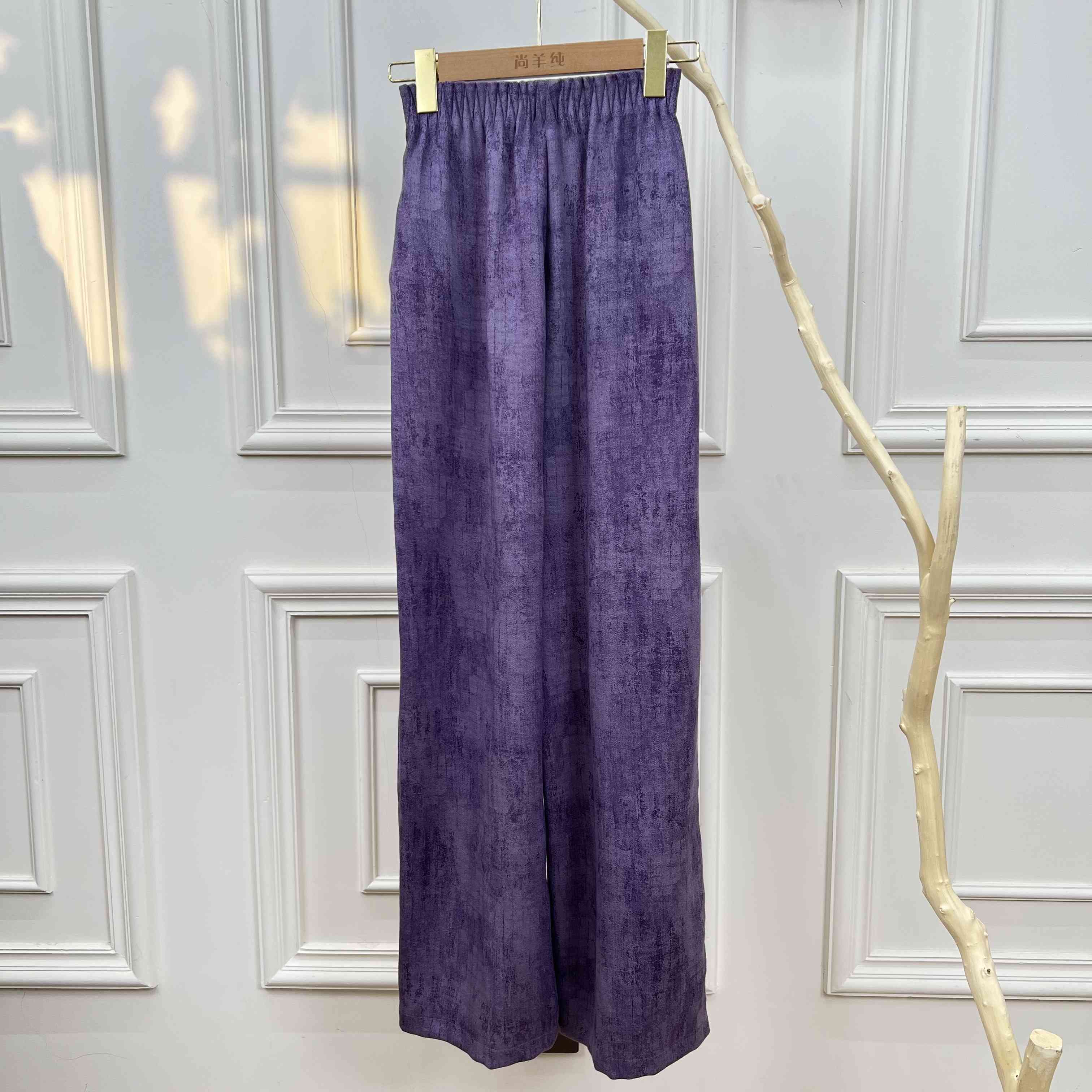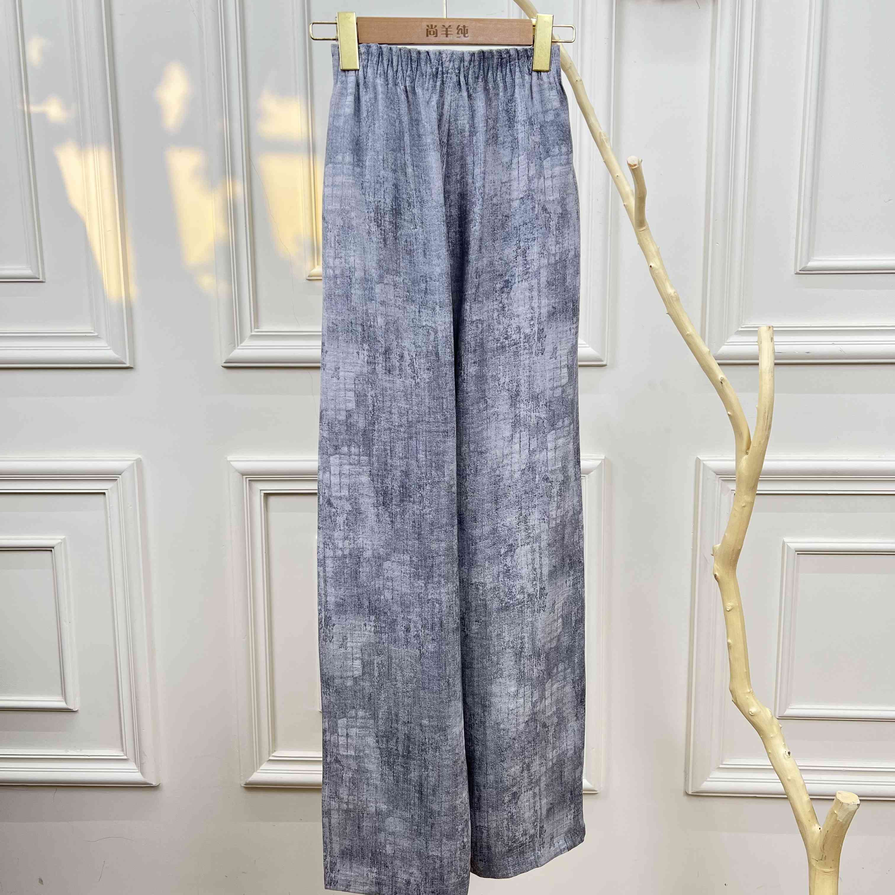 水墨晕染~丝羊毛文艺感直筒显瘦高腰阔腿裤
