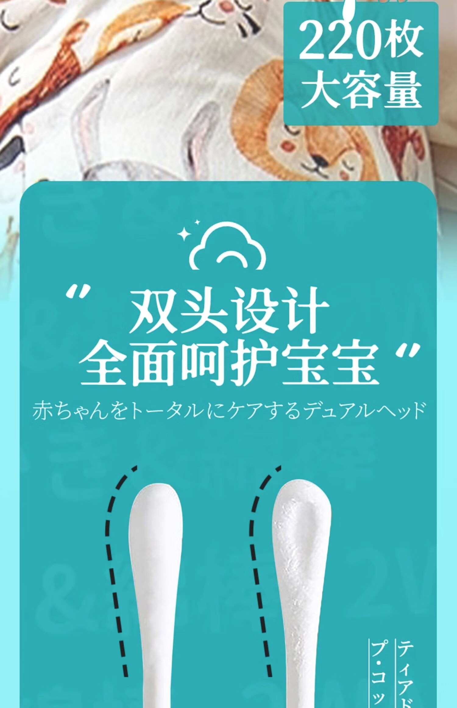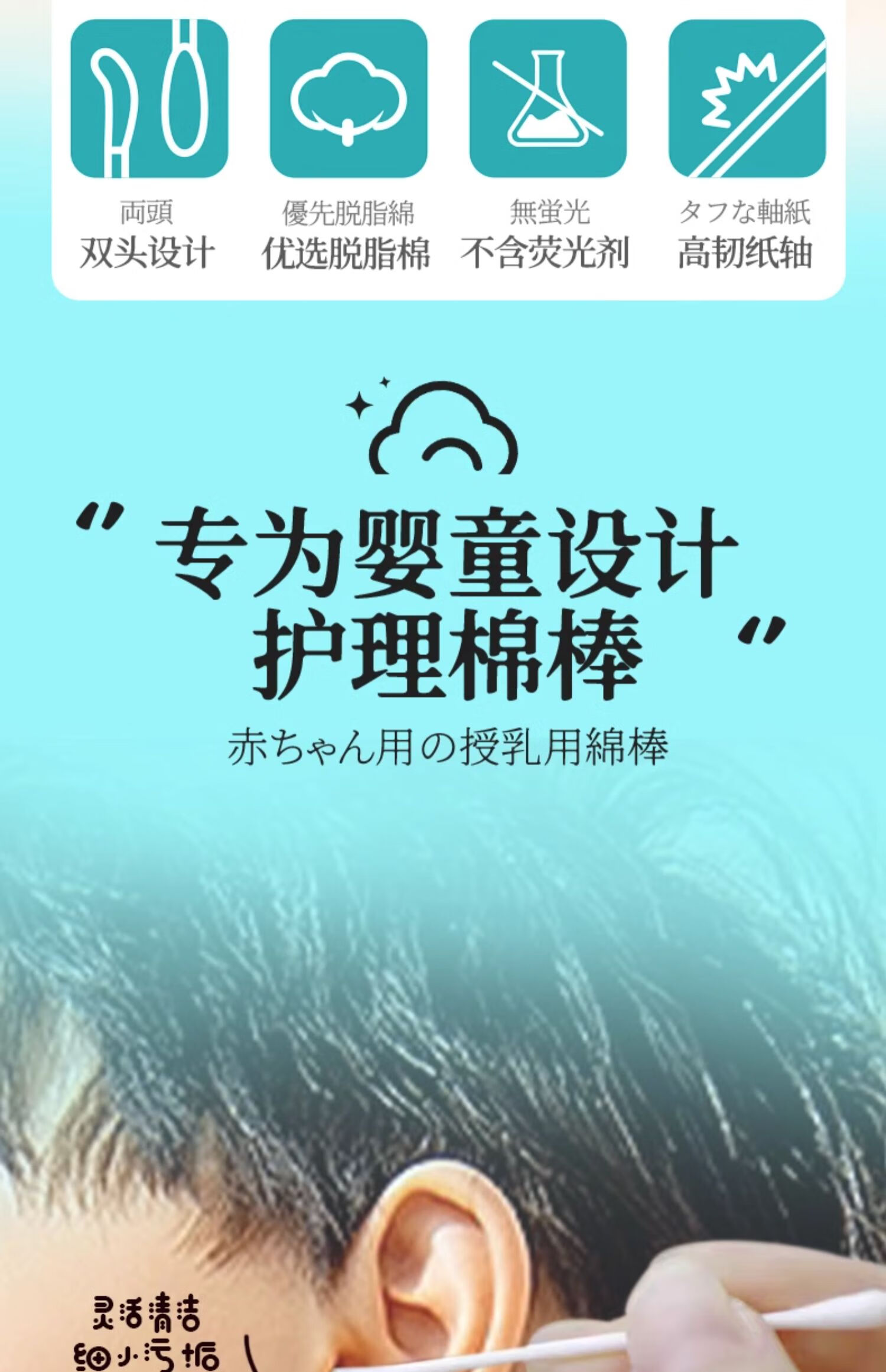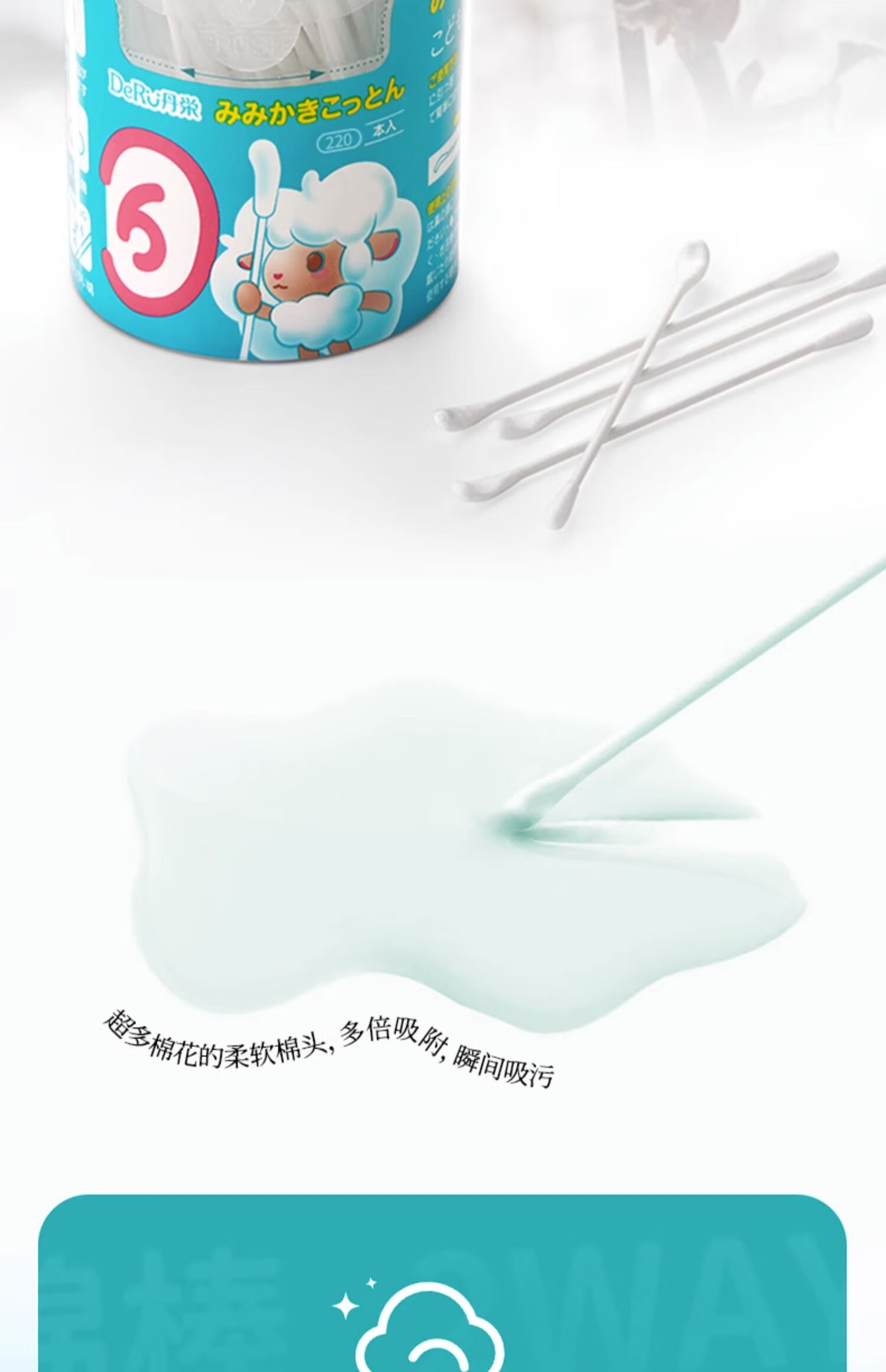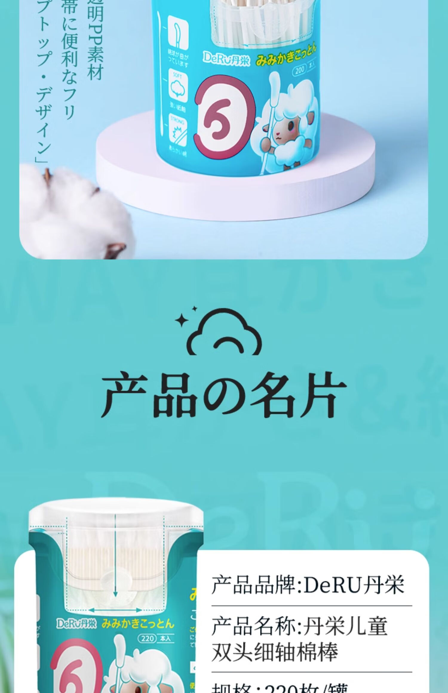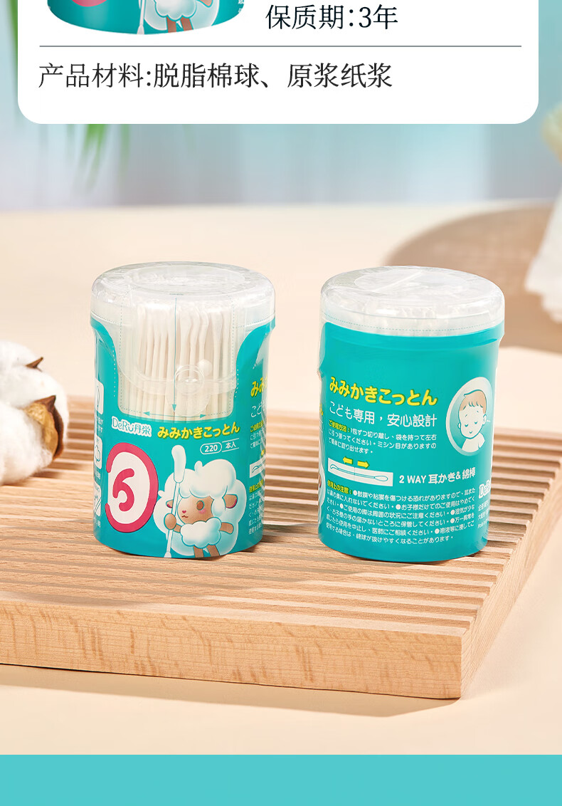 DeRU丹之荣 婴儿耳勺棉棒 0-12岁宝宝棉签新生儿童鼻屎掏耳超细双头棉棒 70枚/220枚