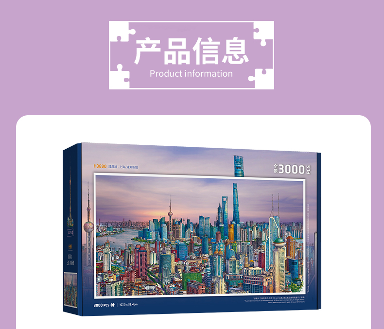 3000片 平面塑料拼图 H3890 全景长版拼图-谭泽鸿-上海,浦东新貌