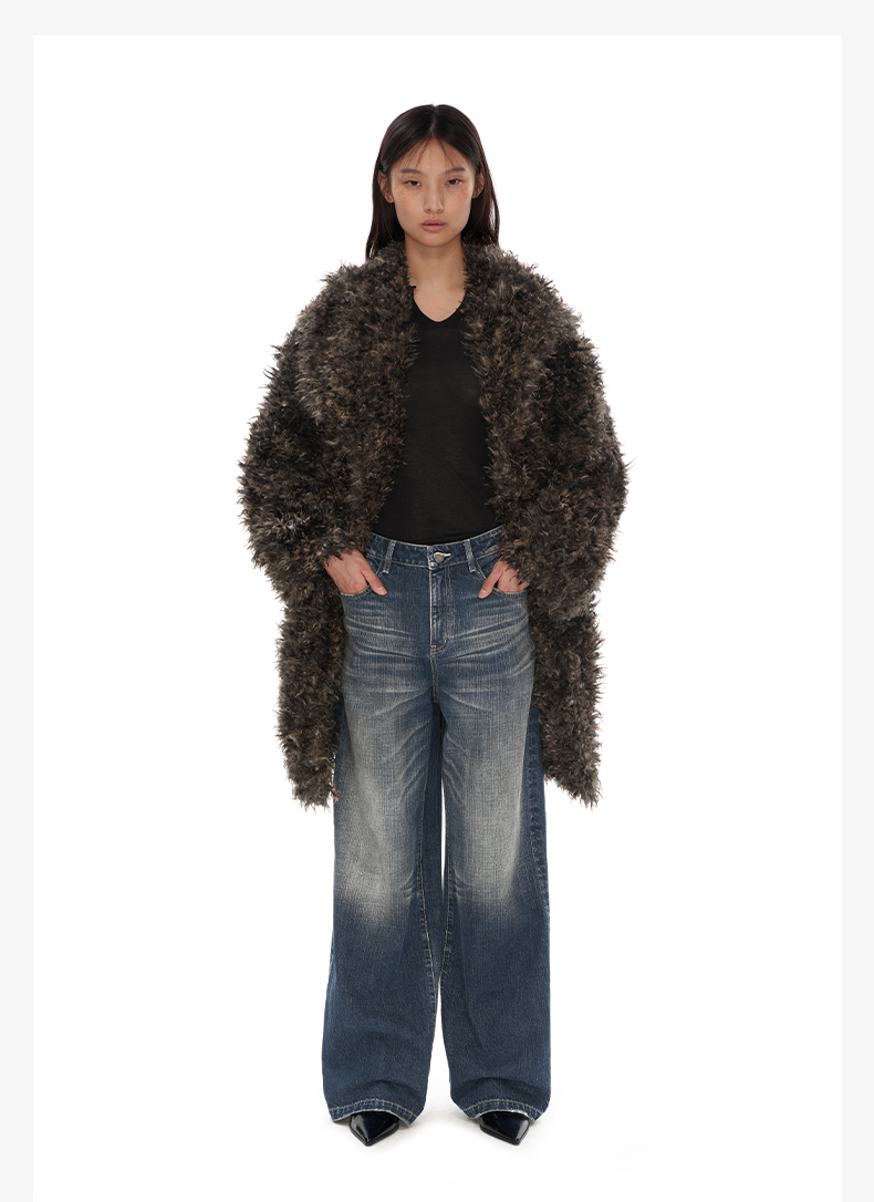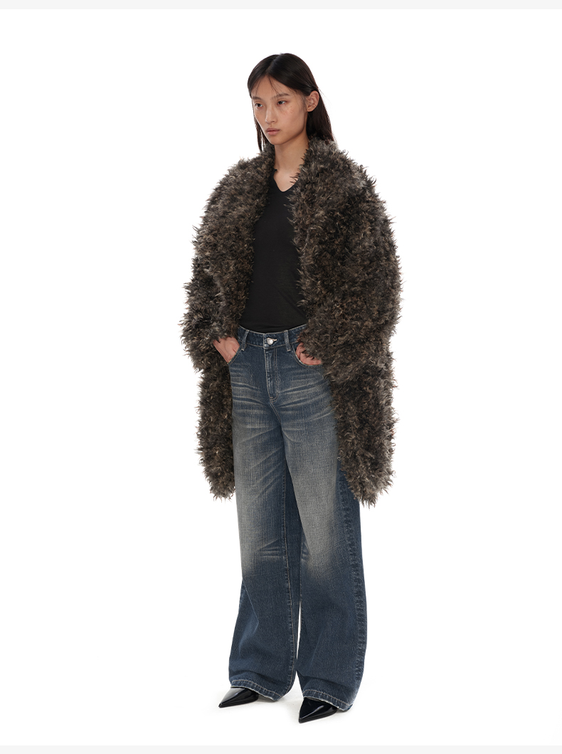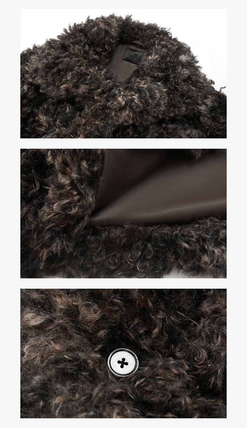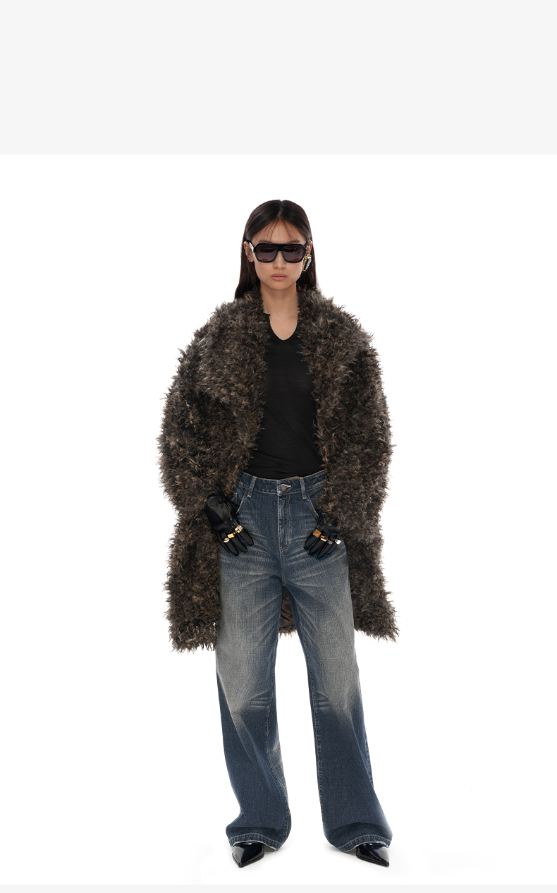 NUTH 棕色中长款环保皮草宽松保暖翻领大衣外套女
